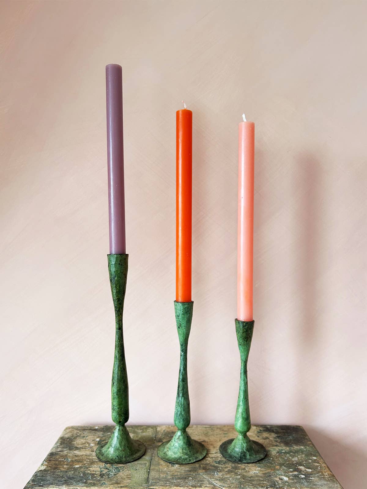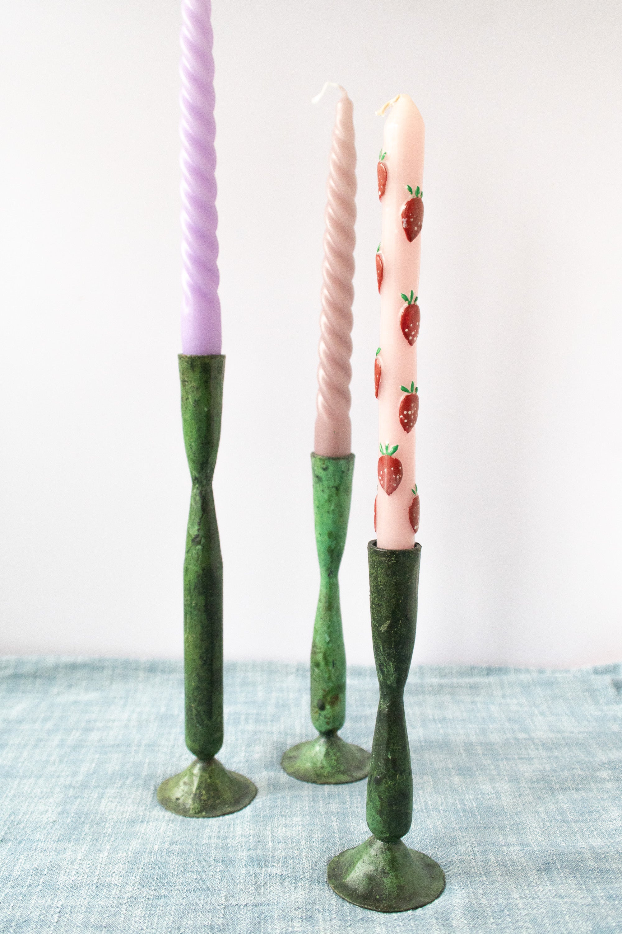 Green Verdigris Hand Forged Iron Candle Holder