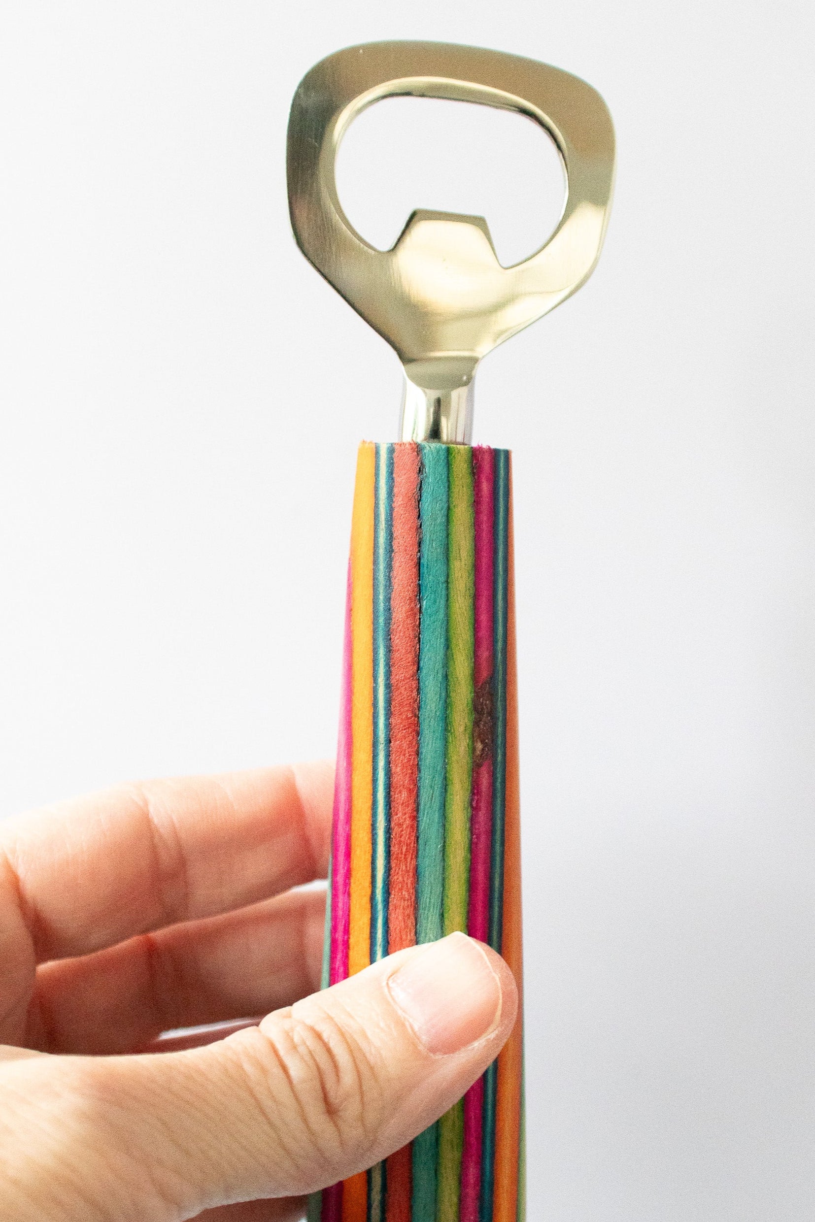 Rainbow Striped Wood Bottle Opener