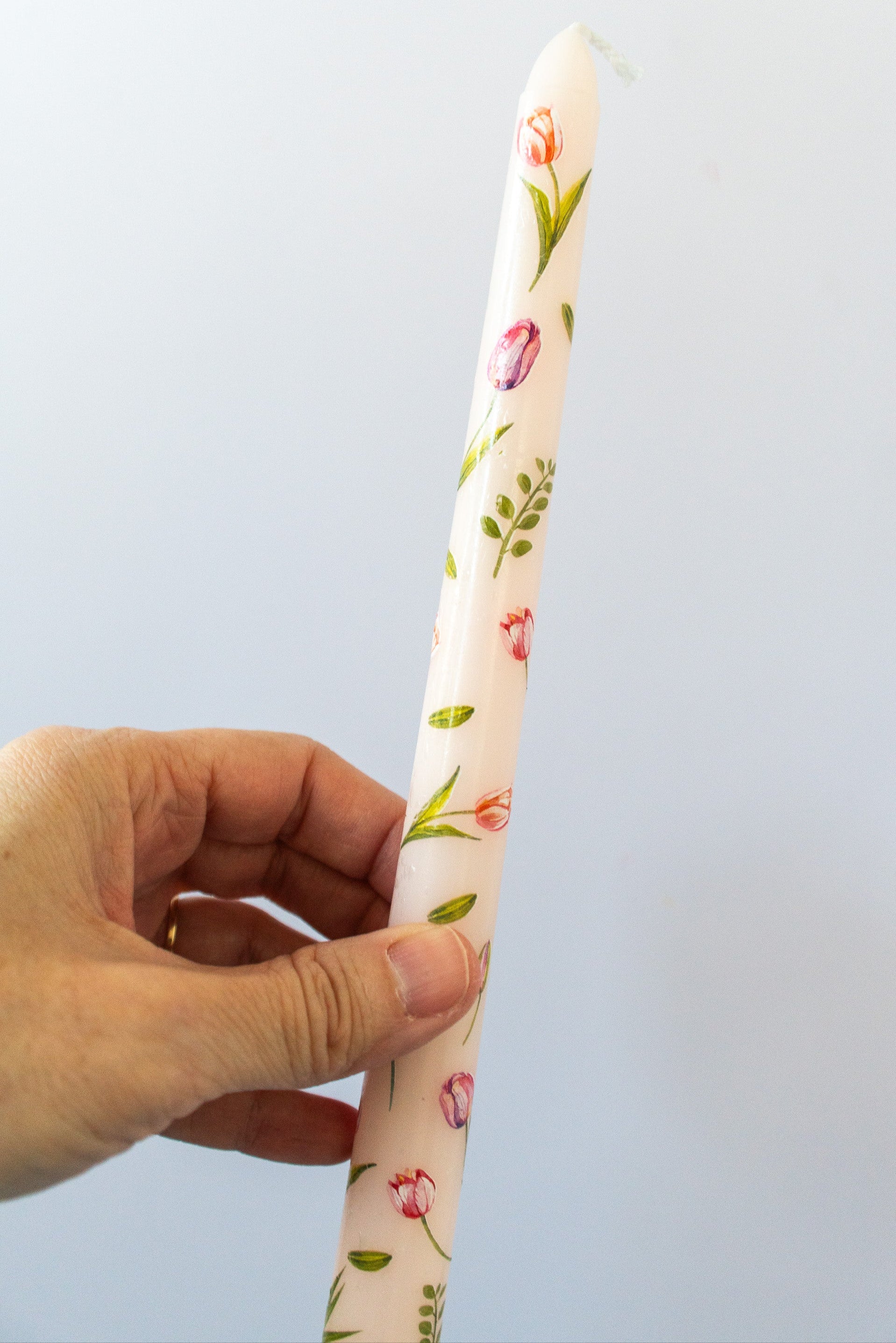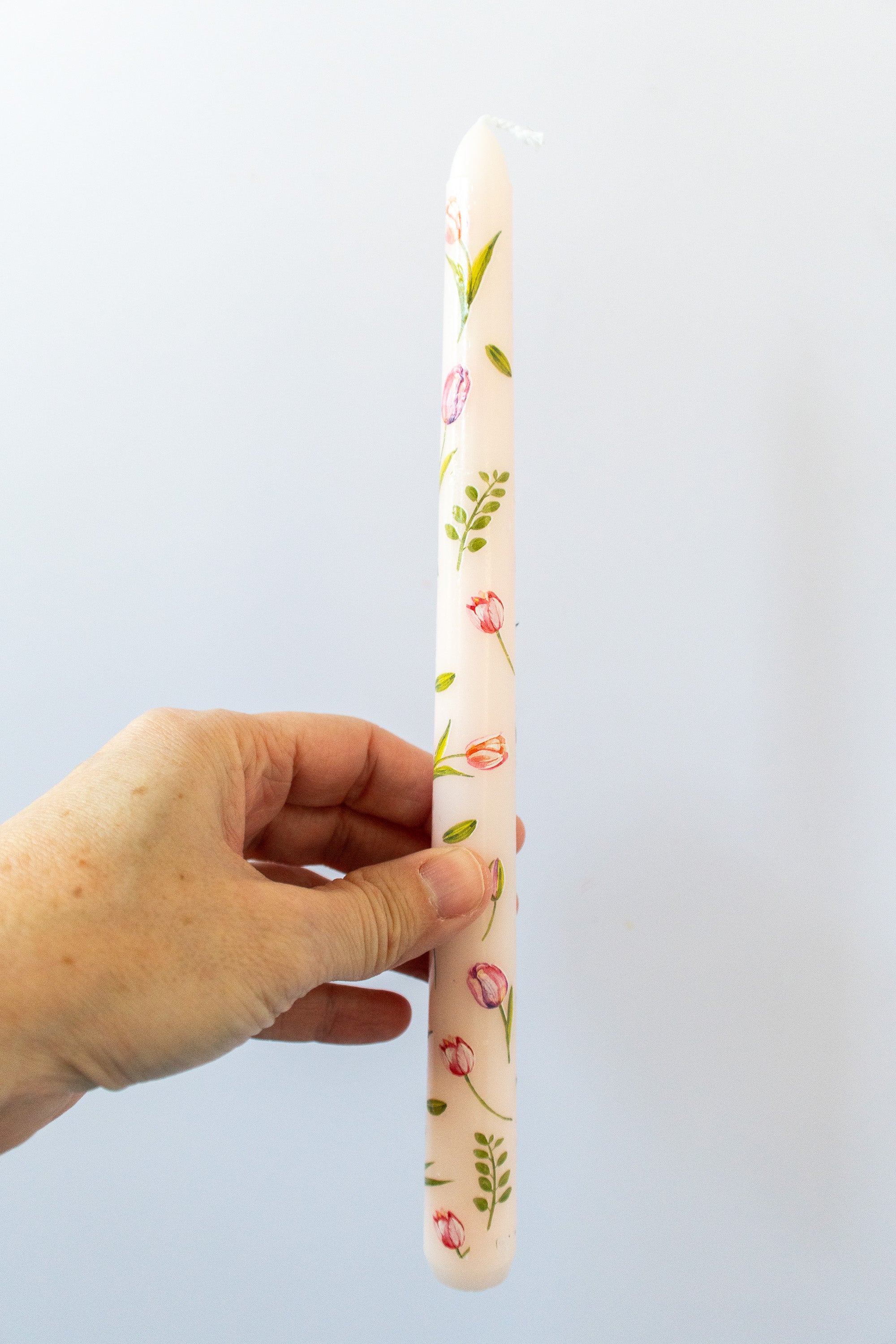 Flowers Candle, Pink Floral Taper Candle with Tulips