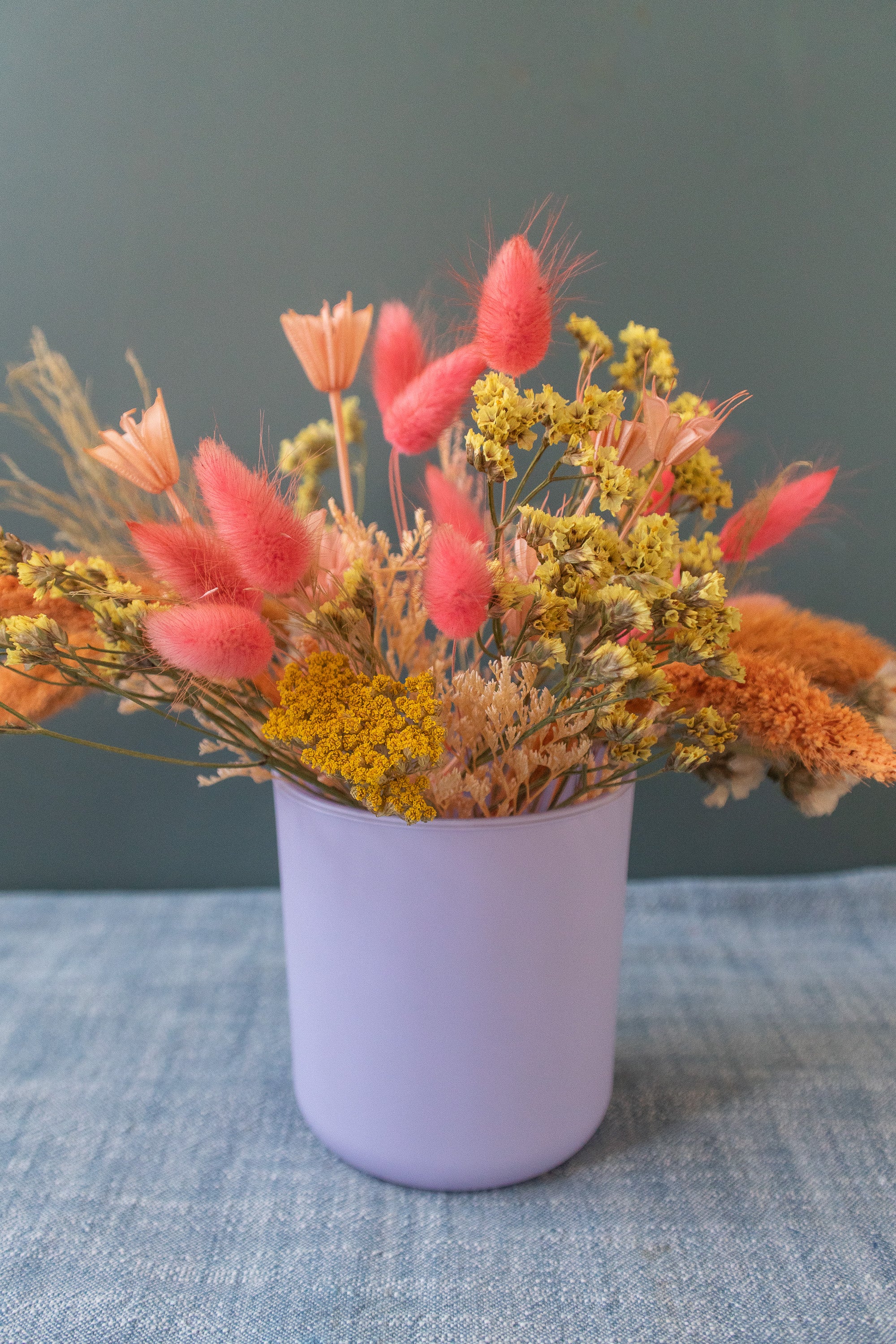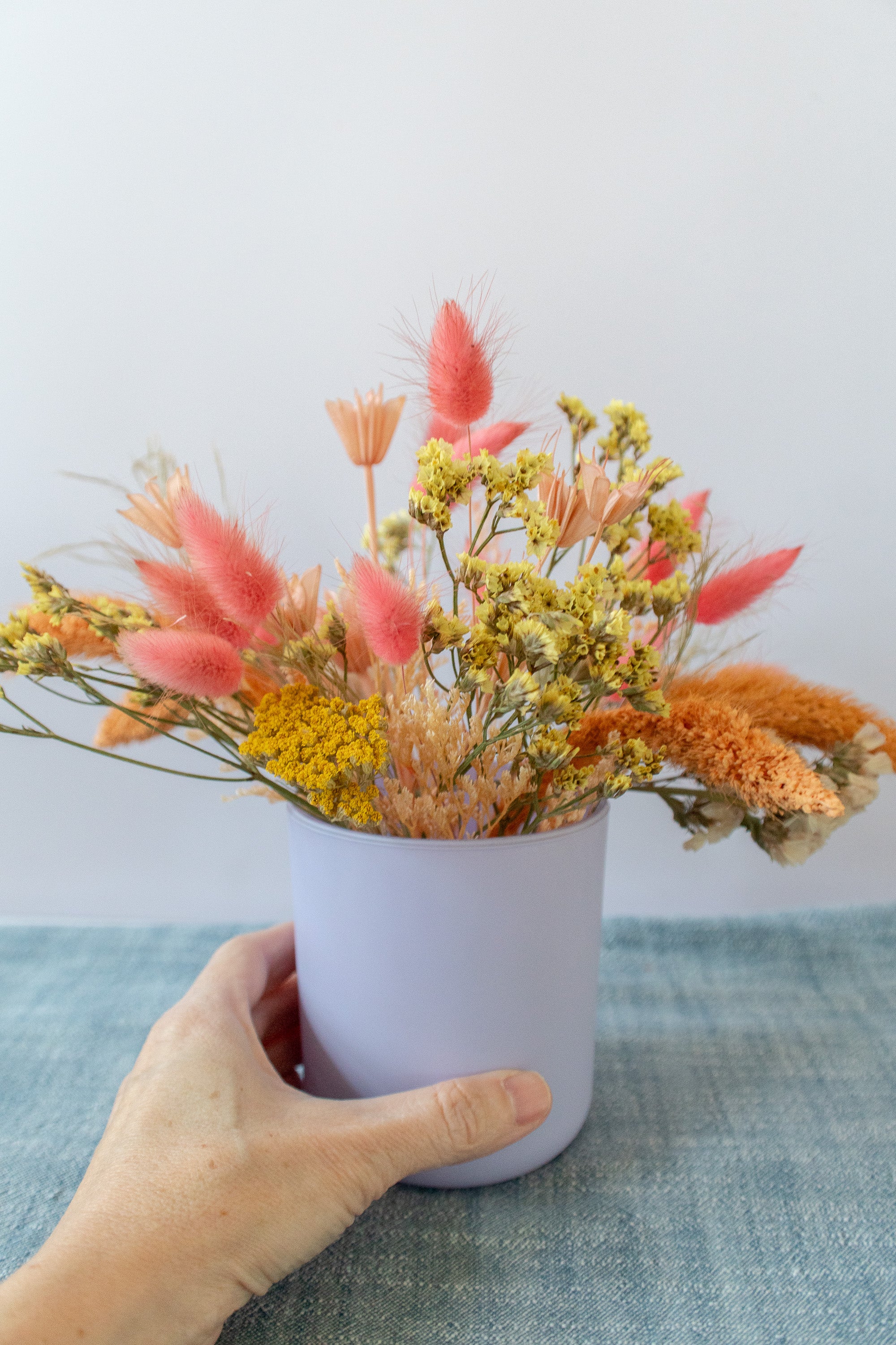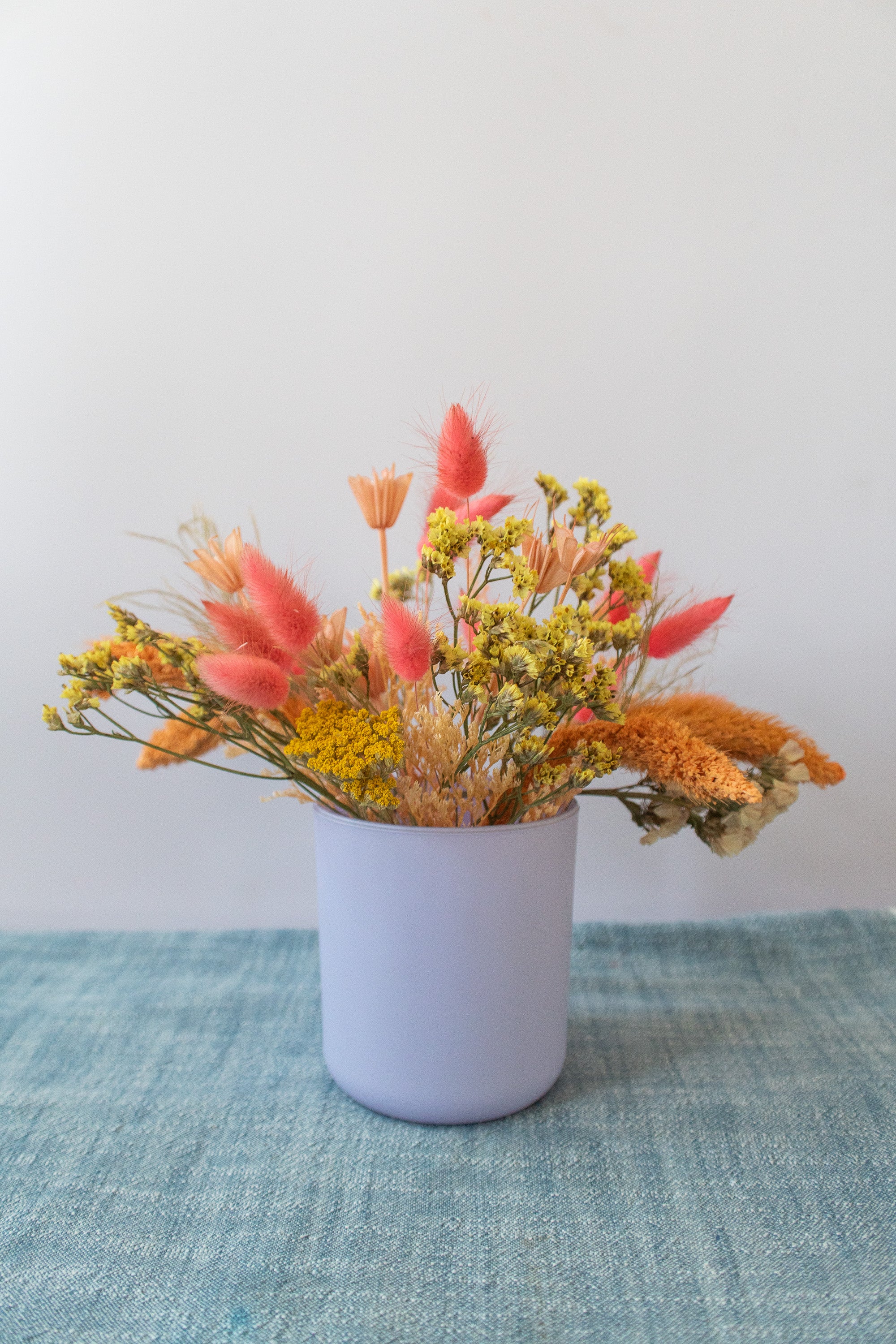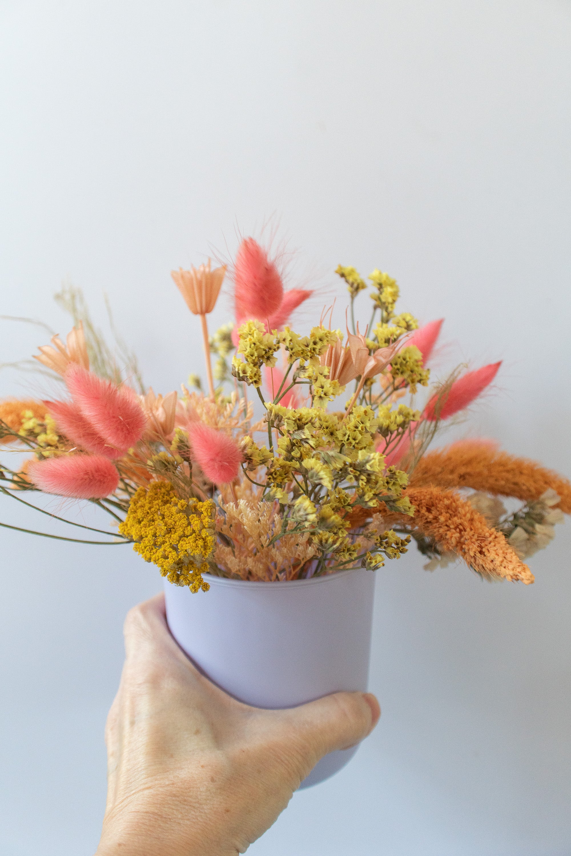 Small Dried Flower Arrangement in Colorful Vase