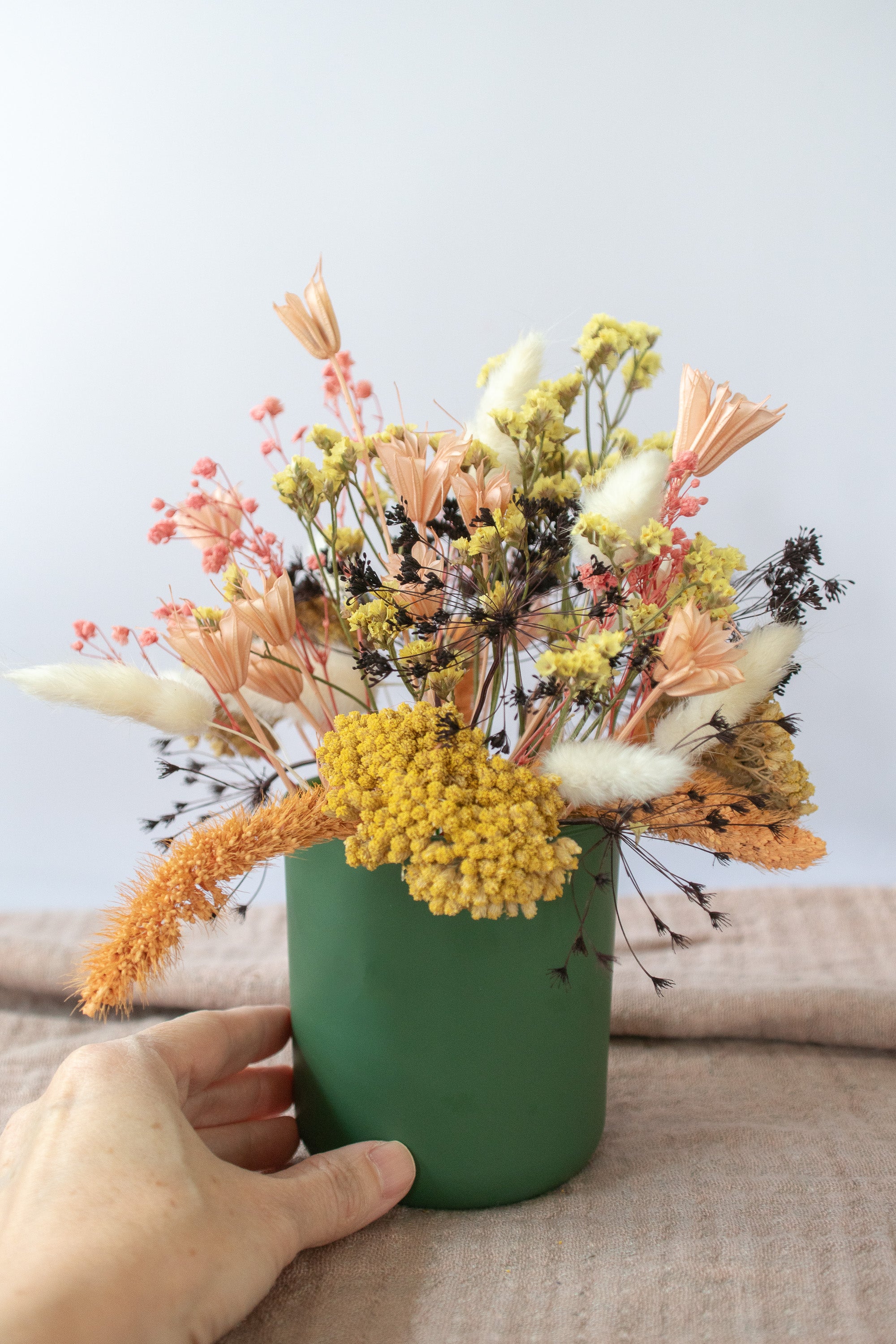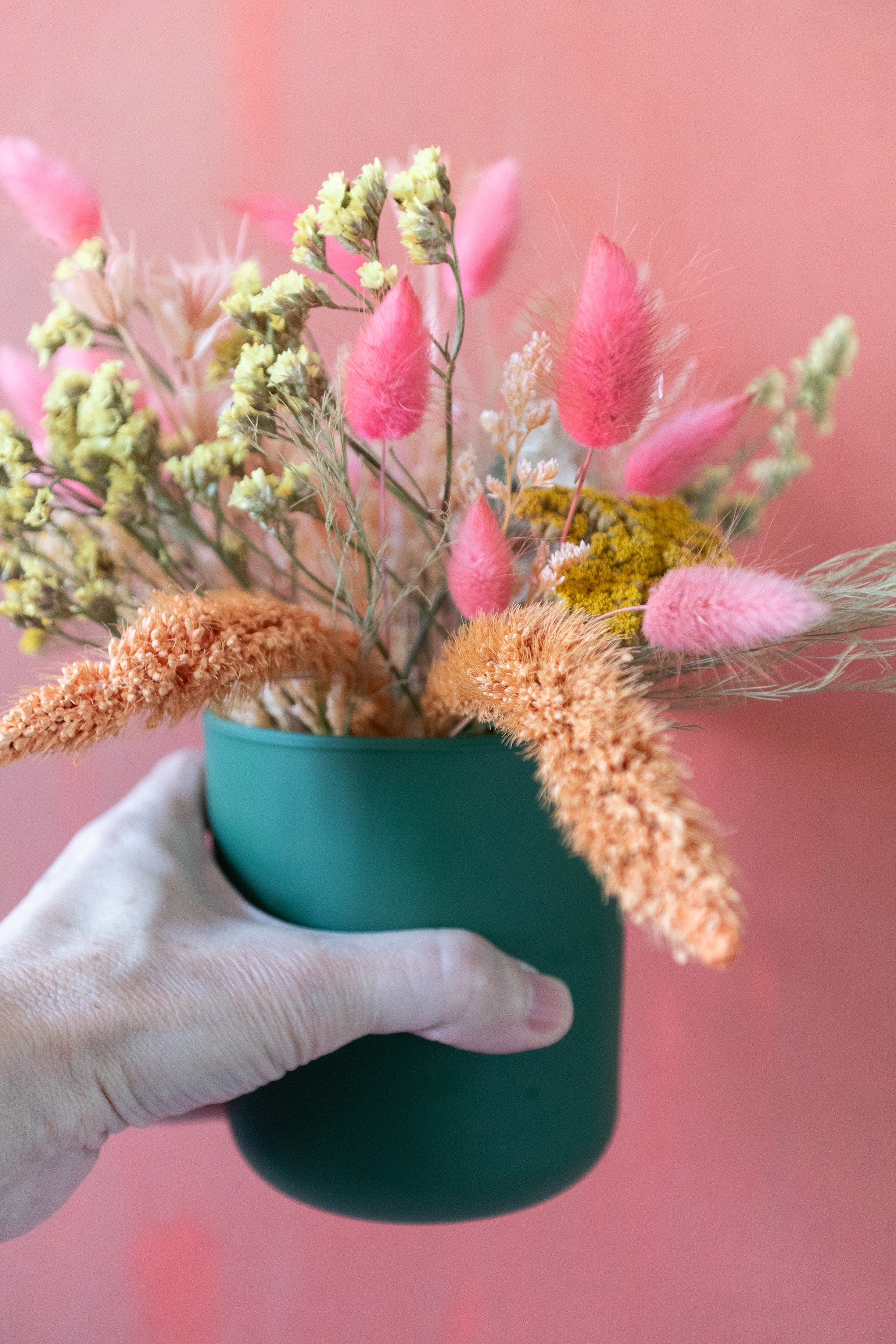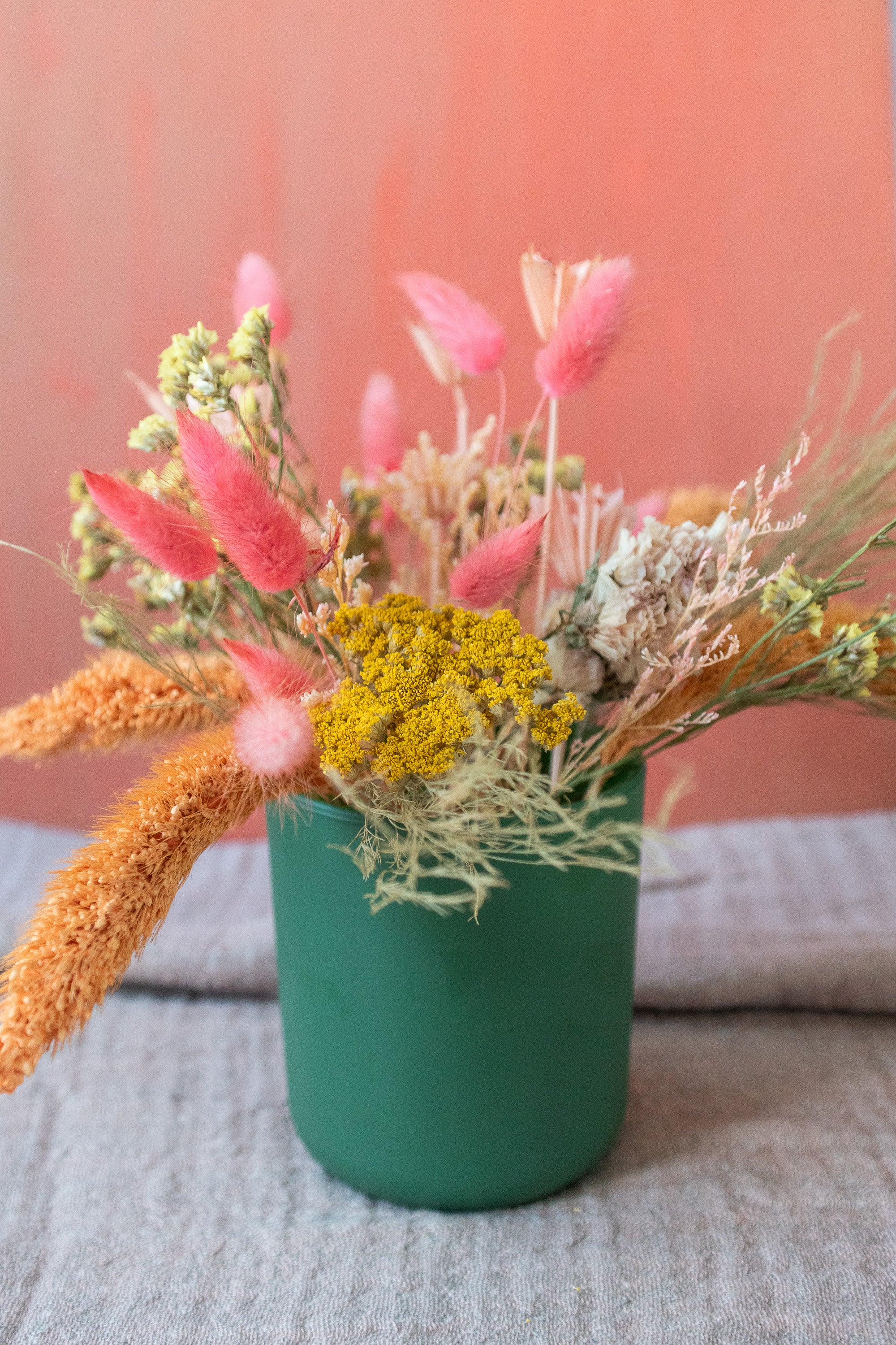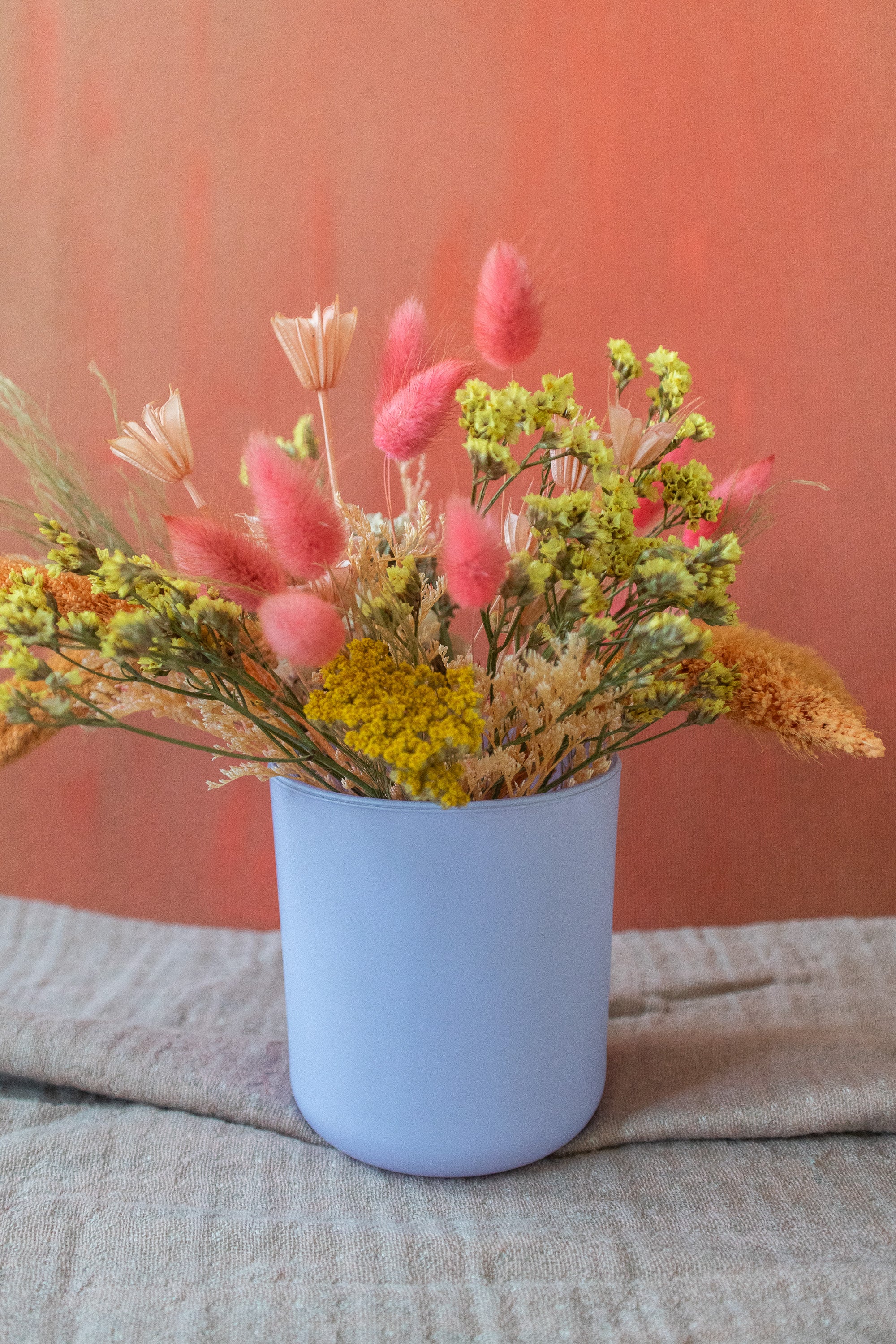 Small Dried Flower Arrangement in Colorful Vase