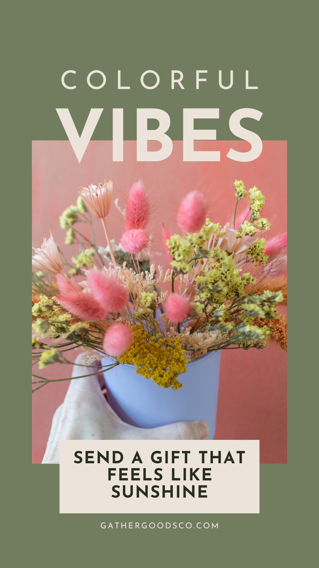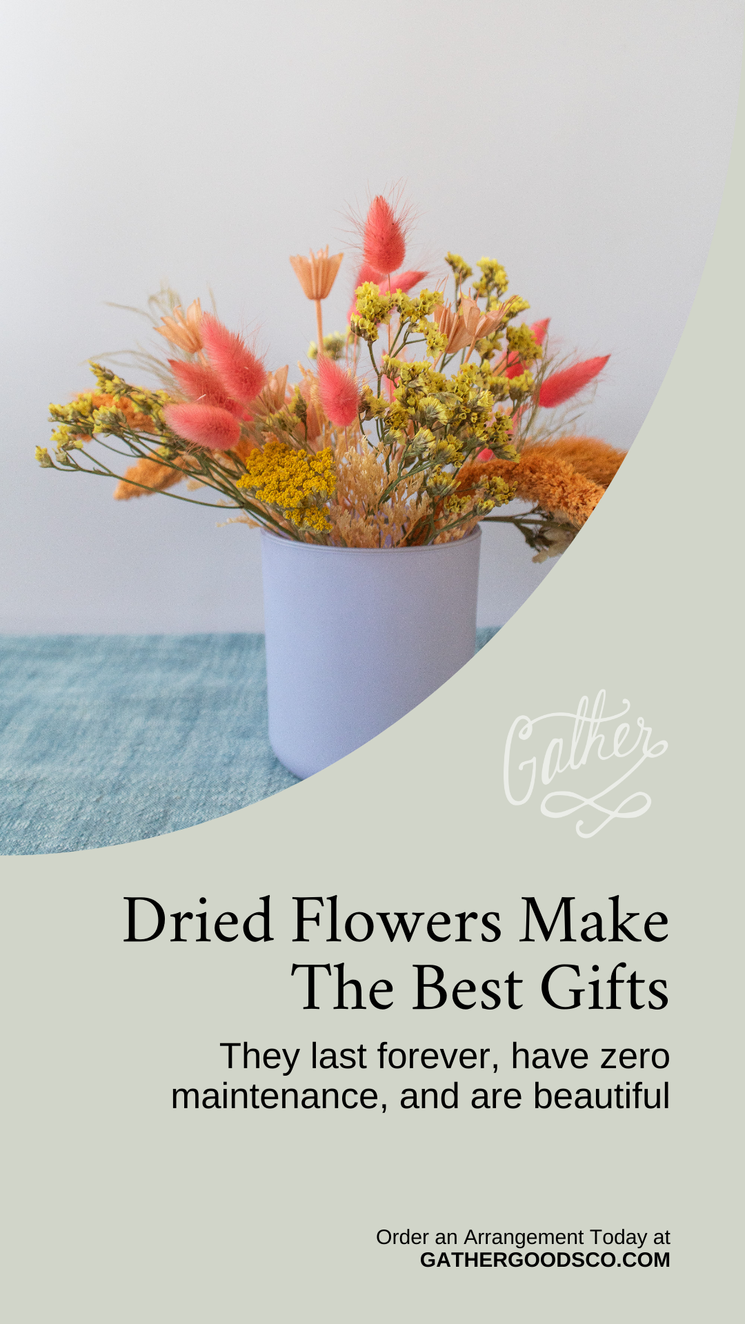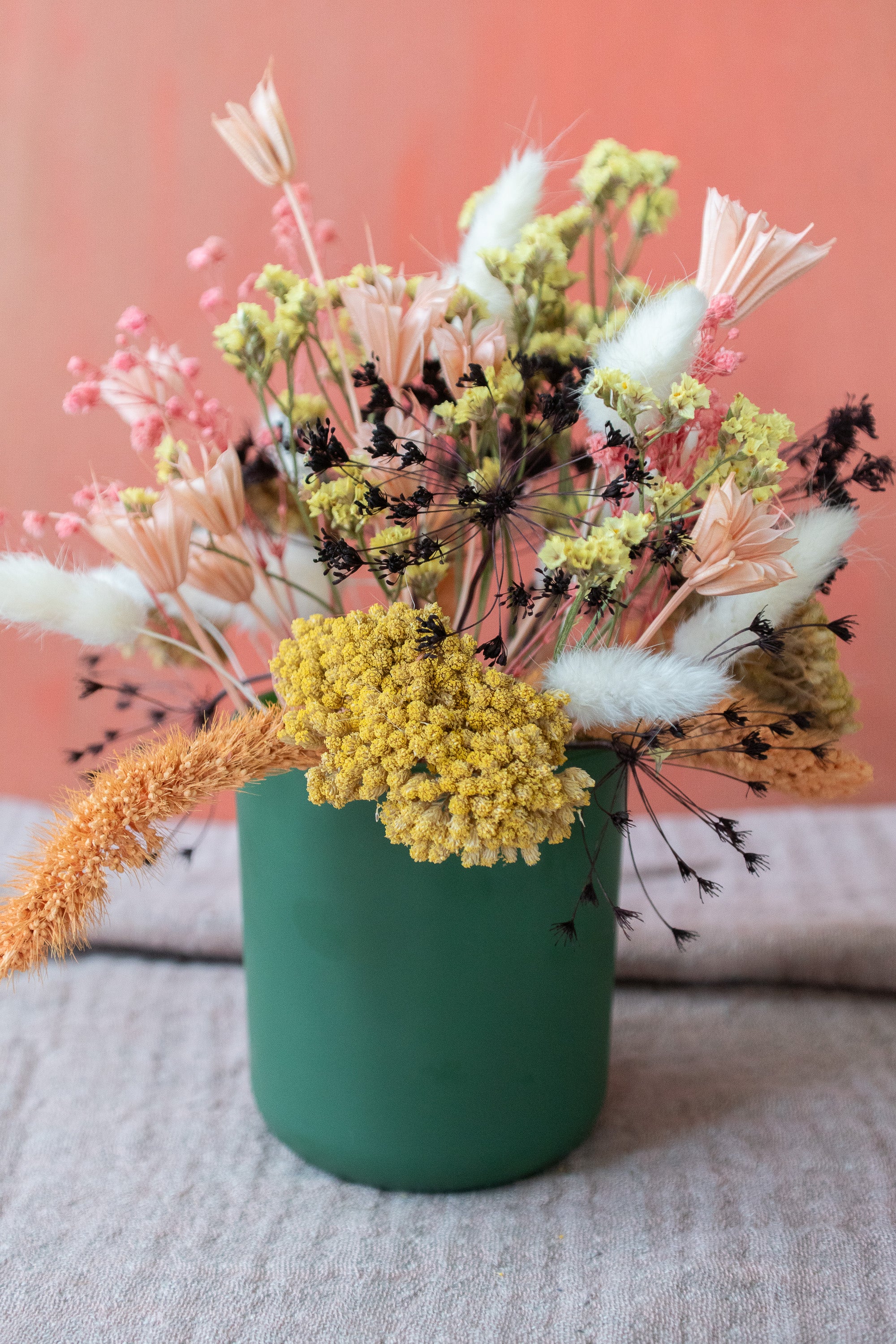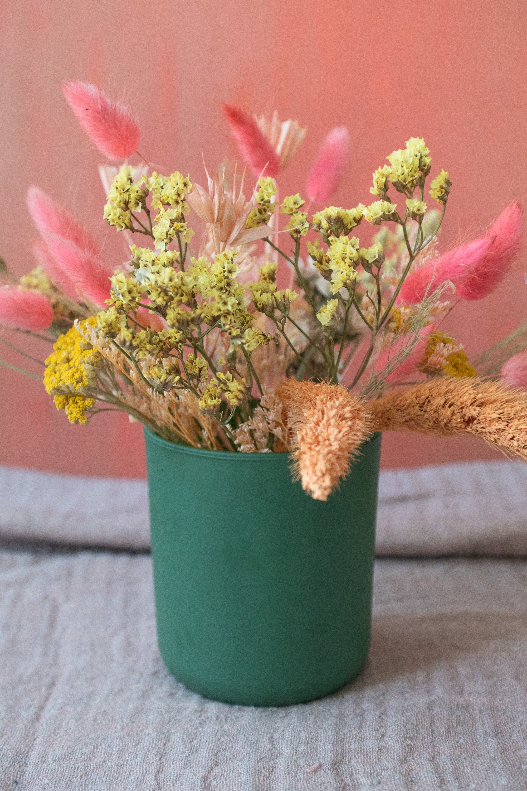 Small Dried Flower Arrangement in Colorful Vase