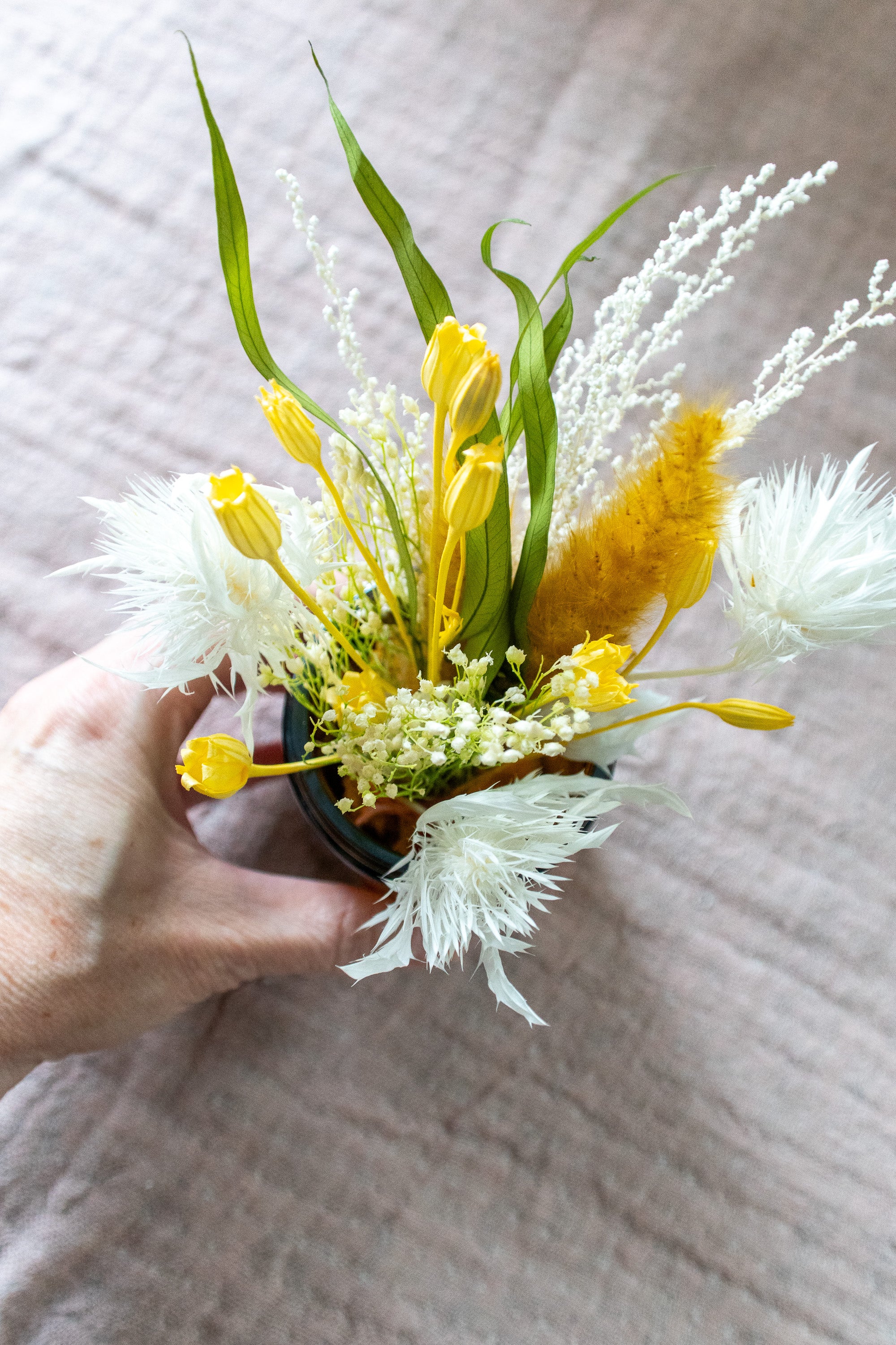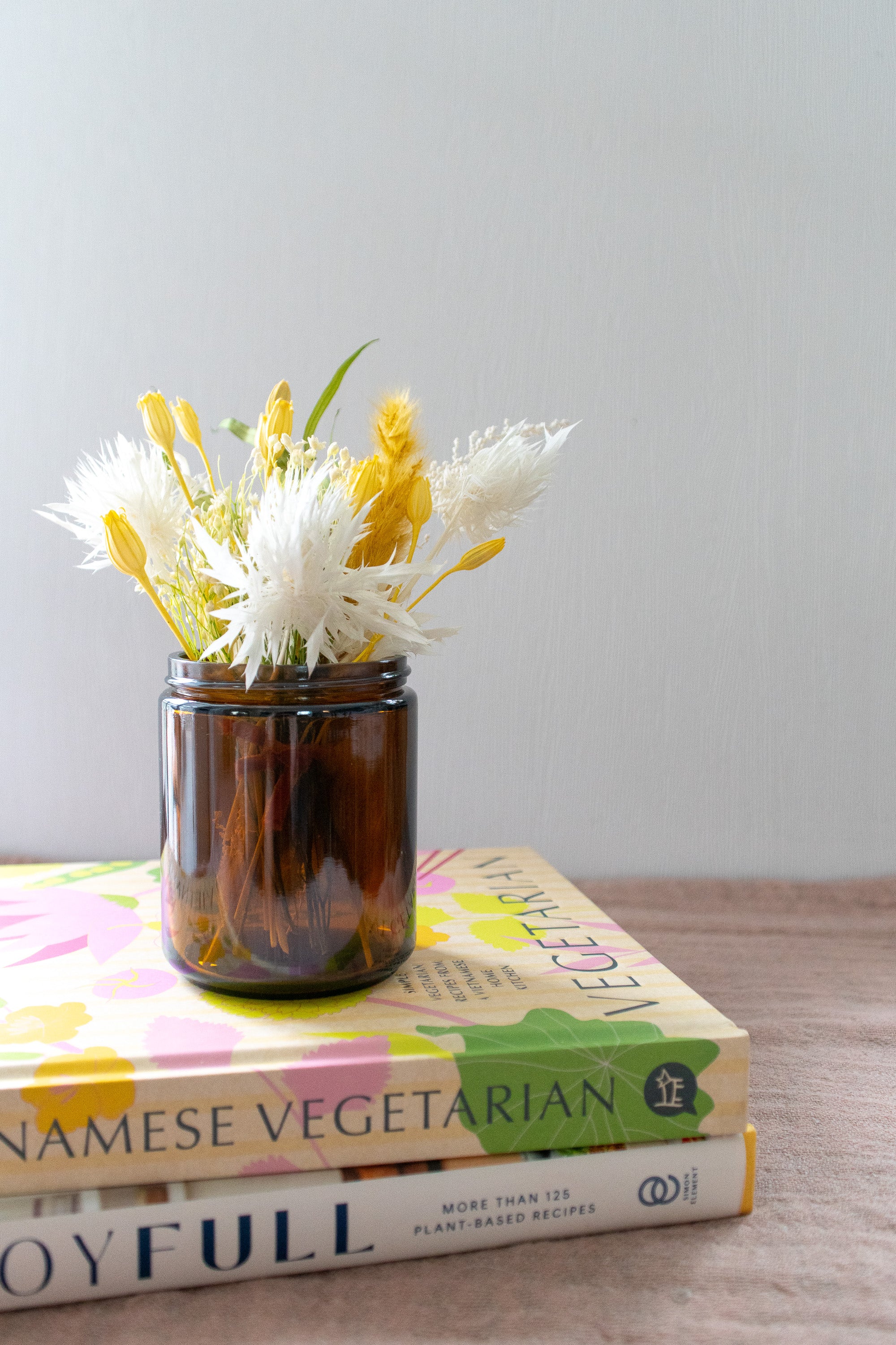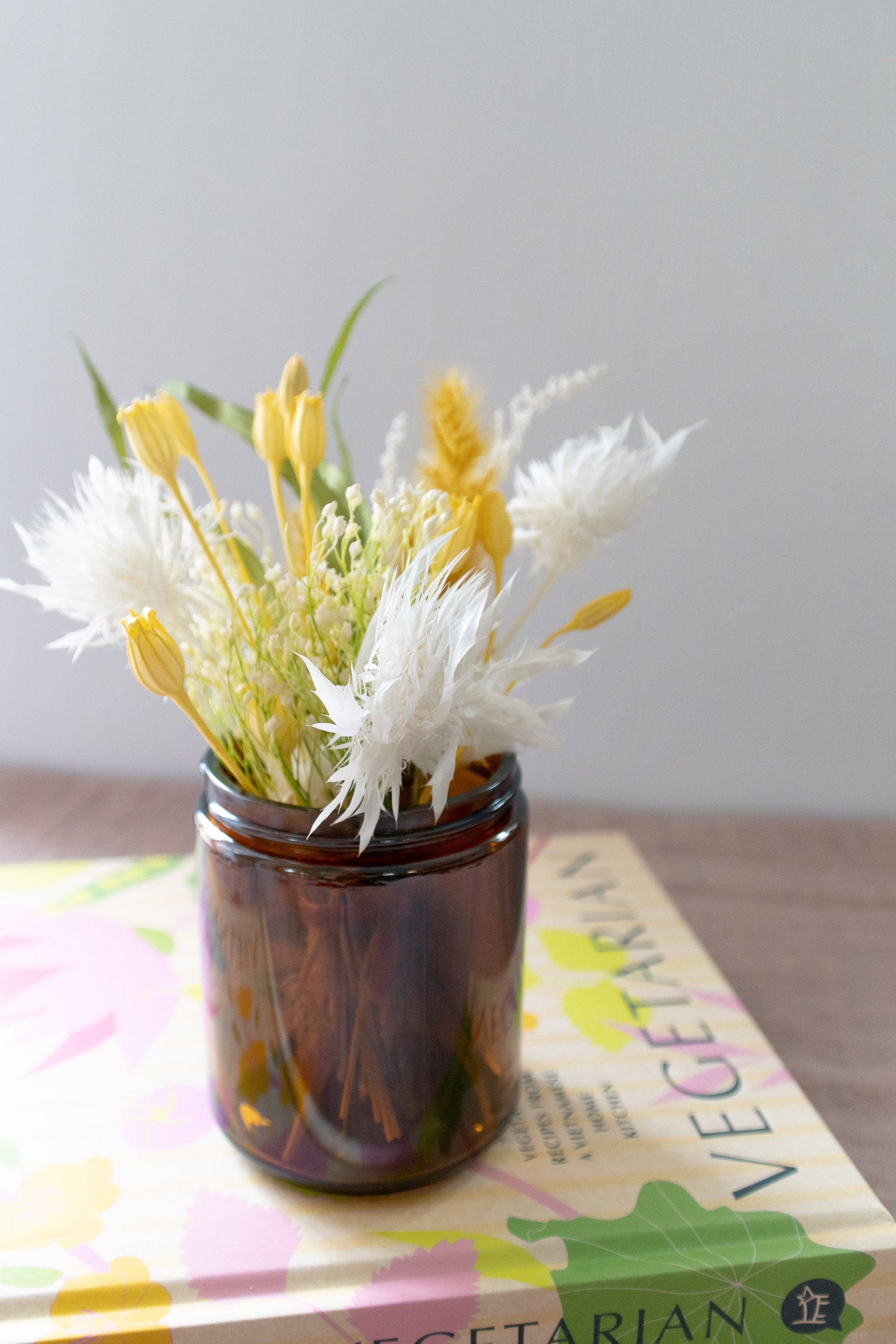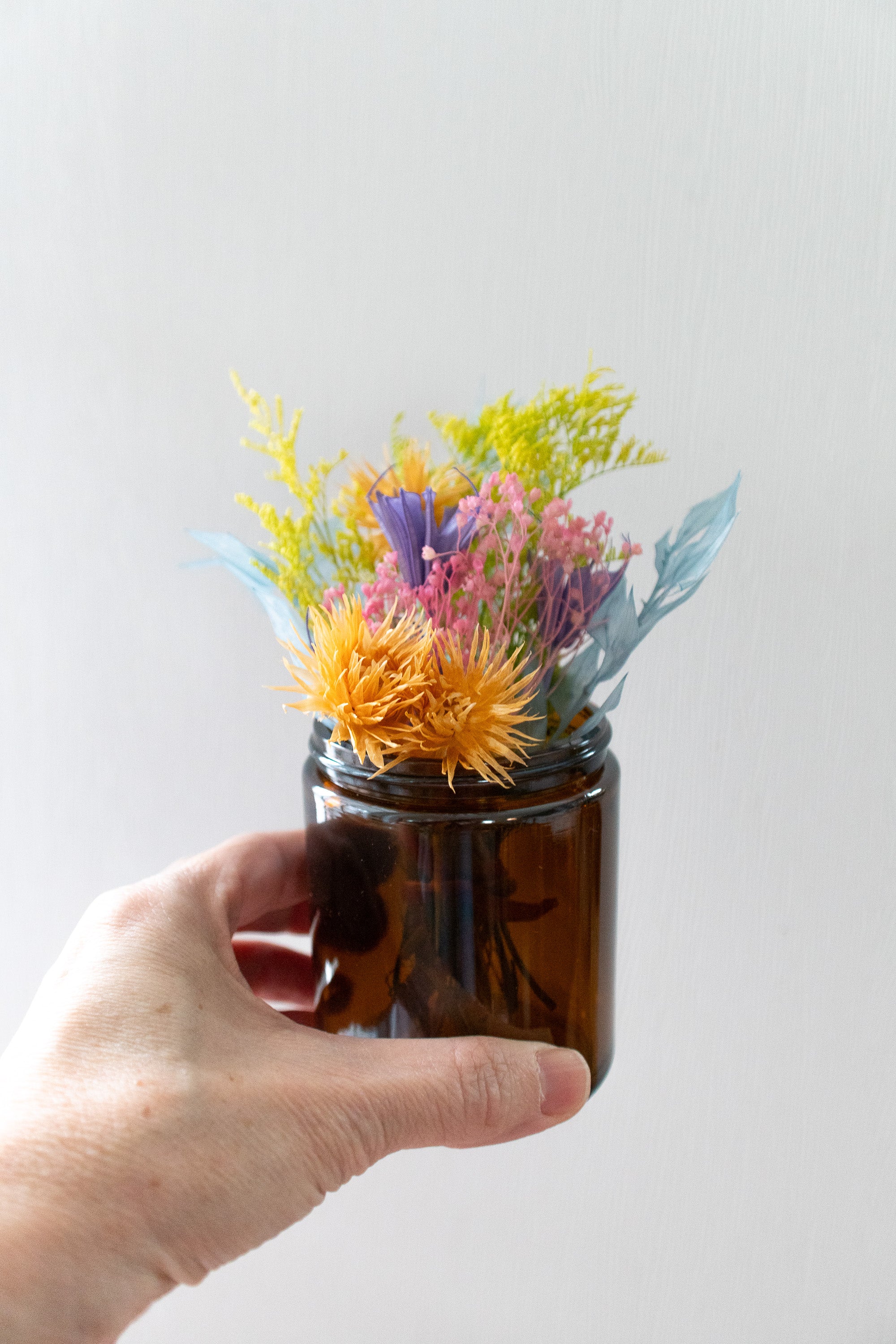 Petite Dried Flower Arrangement in An Amber Glass Jar