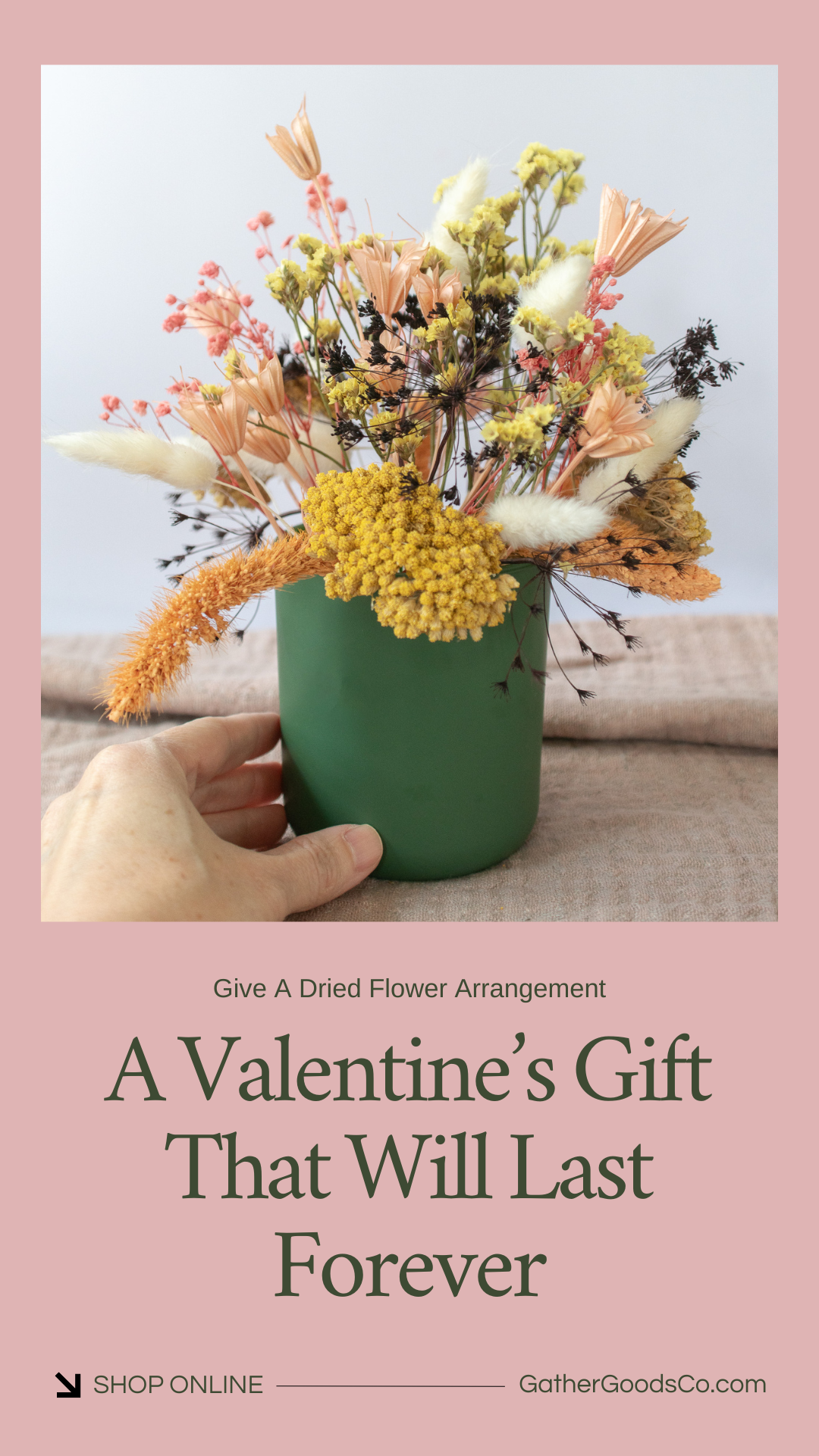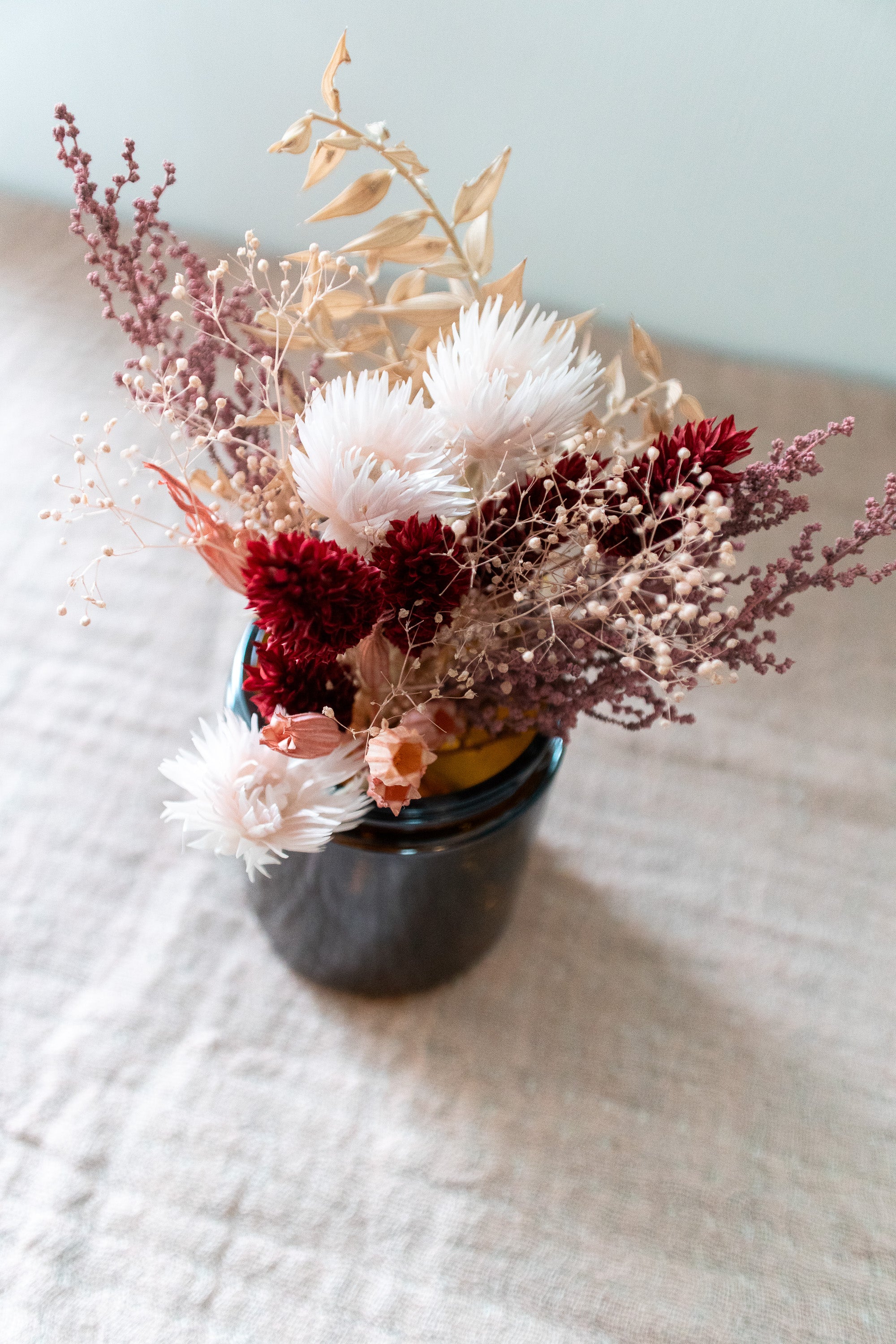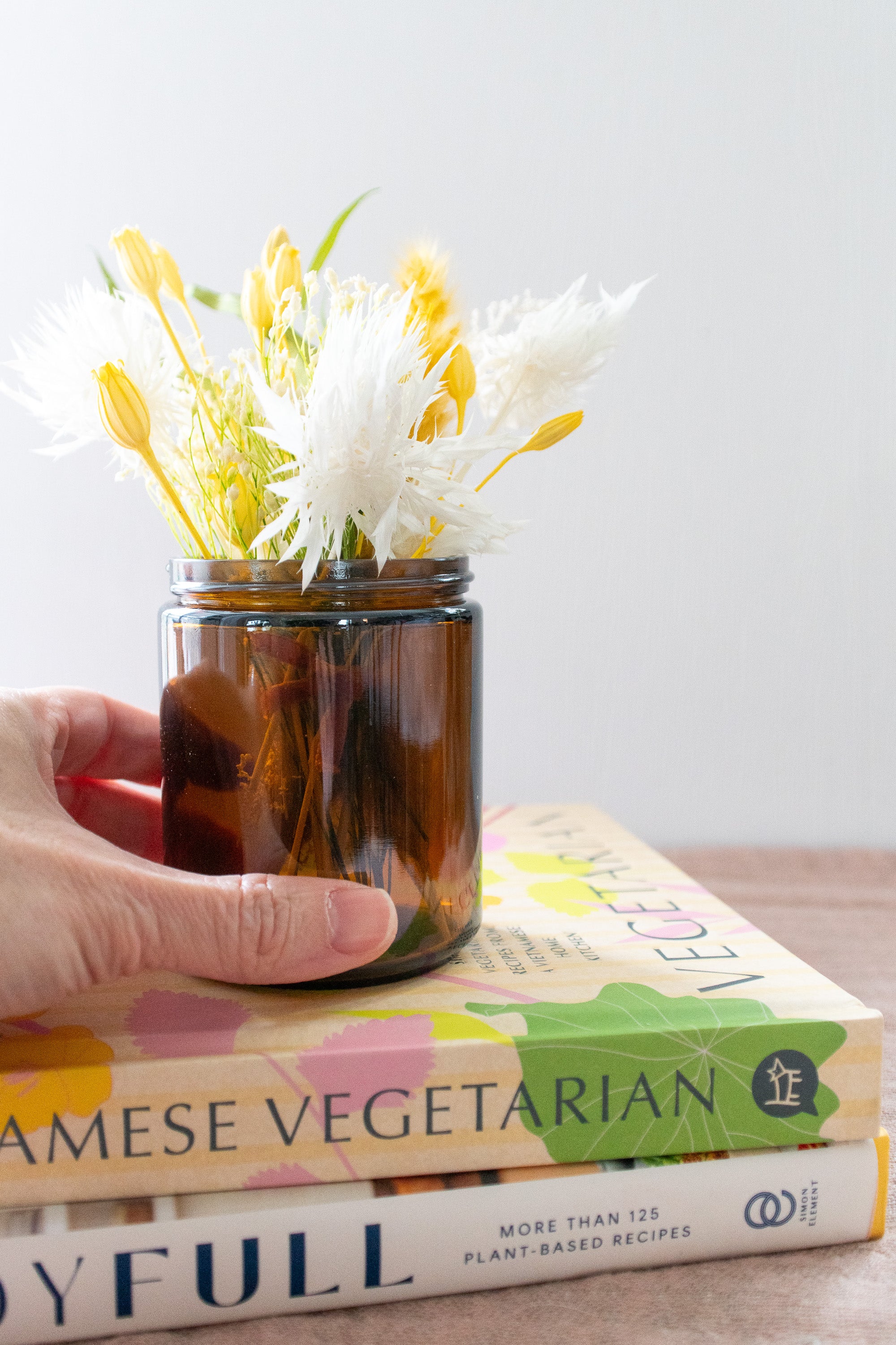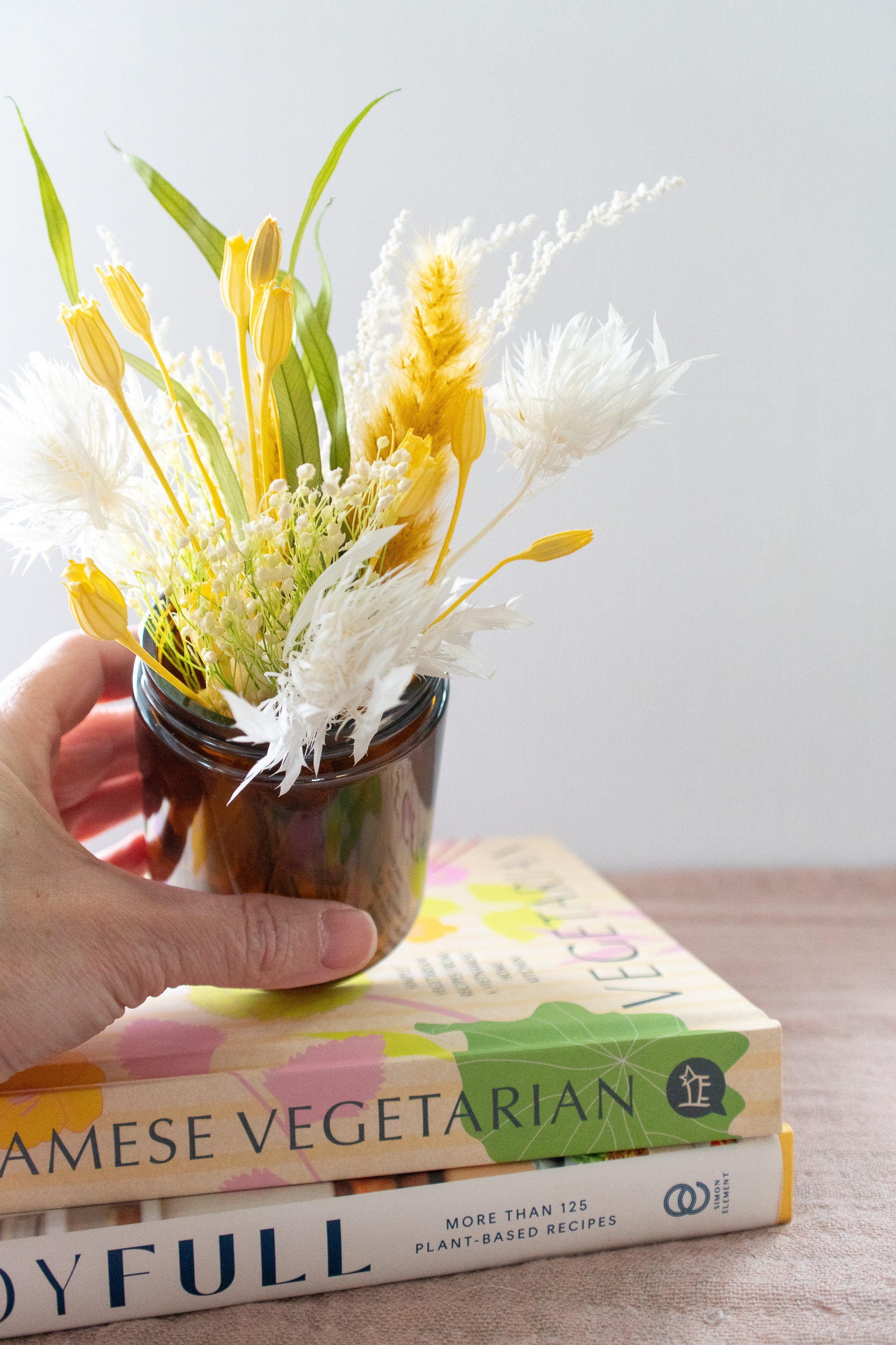 Petite Dried Flower Arrangement in An Amber Glass Jar