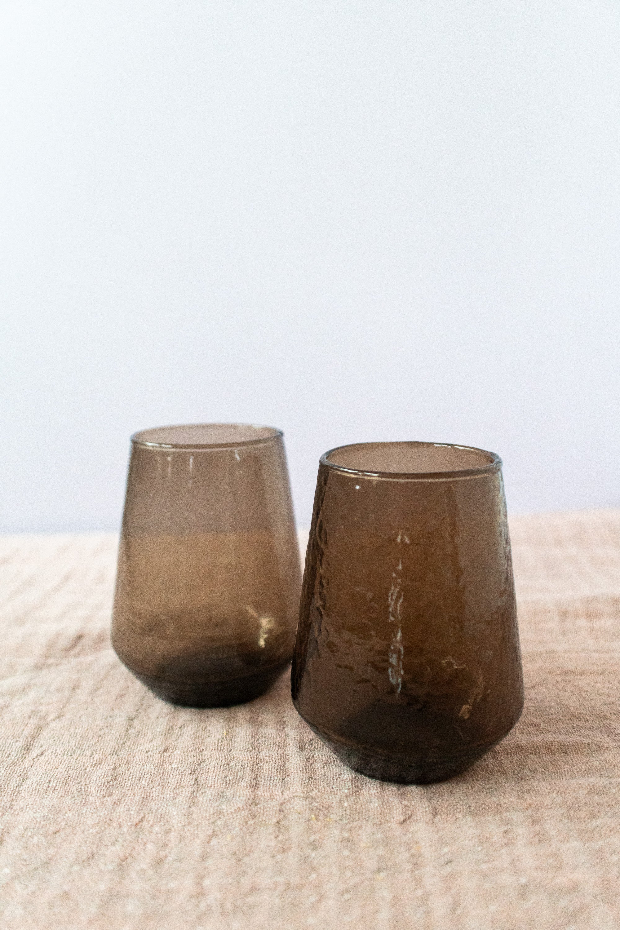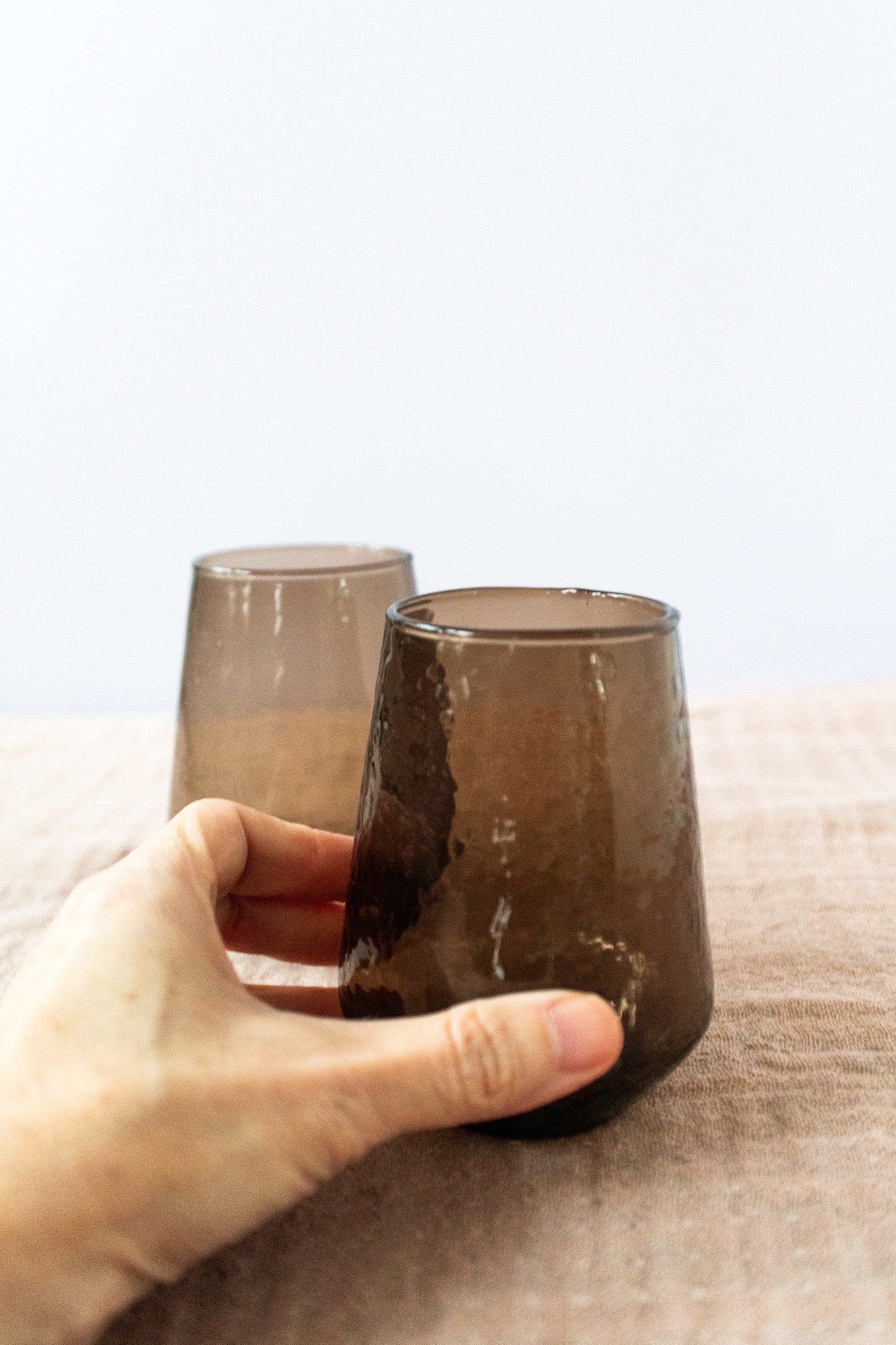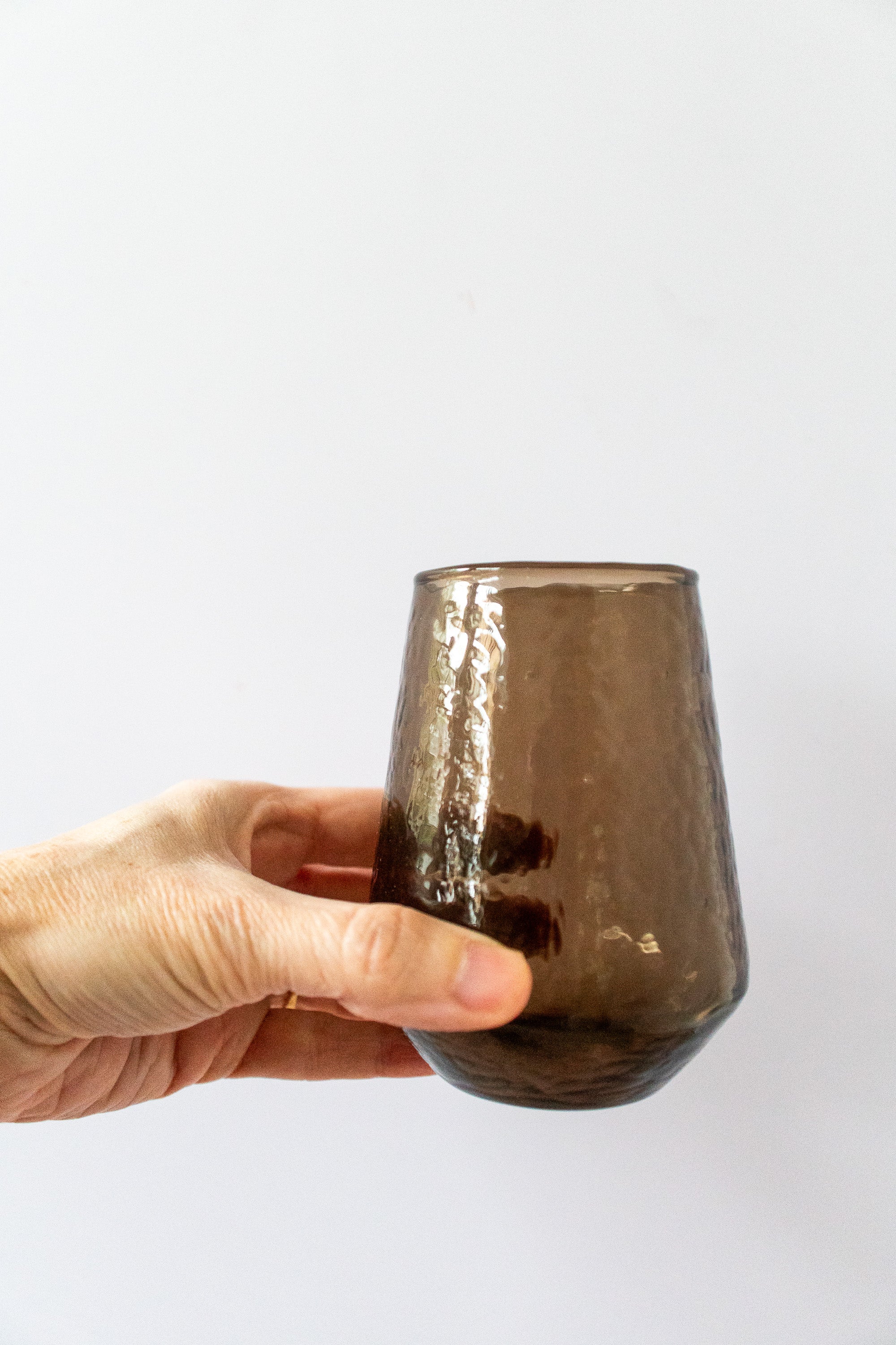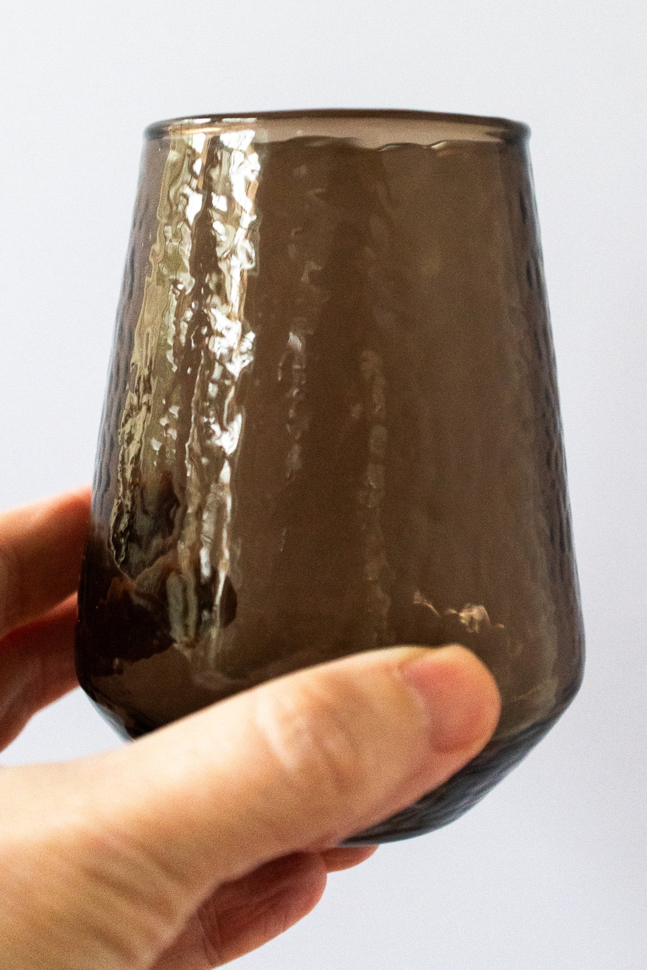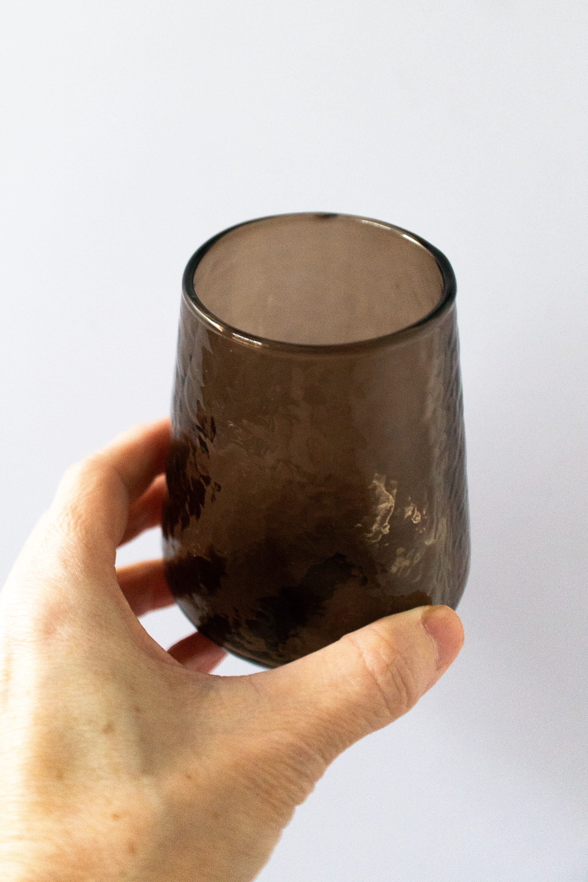 Handblown Hammered Glass Water Tumbler in Smokey Brown