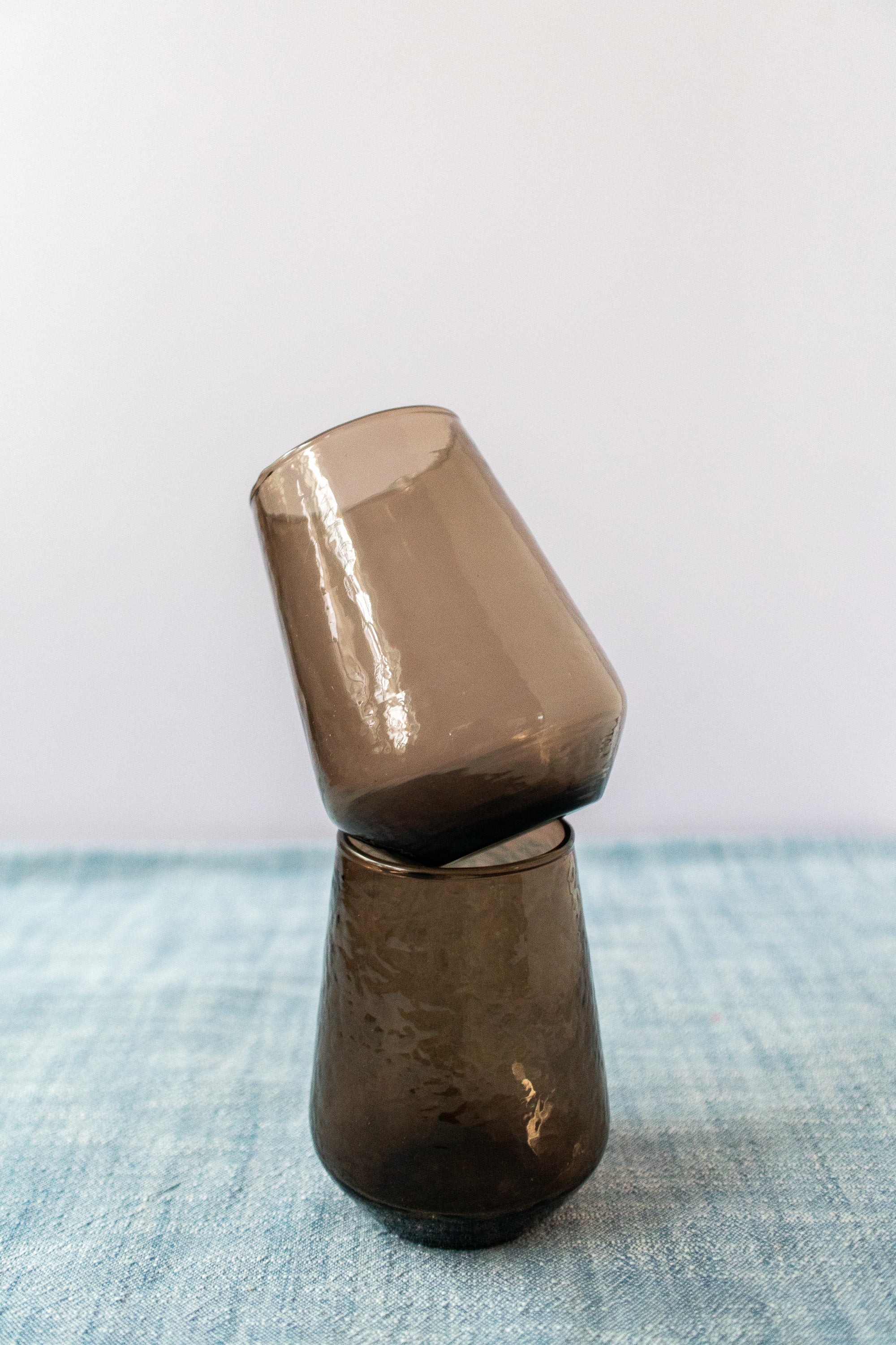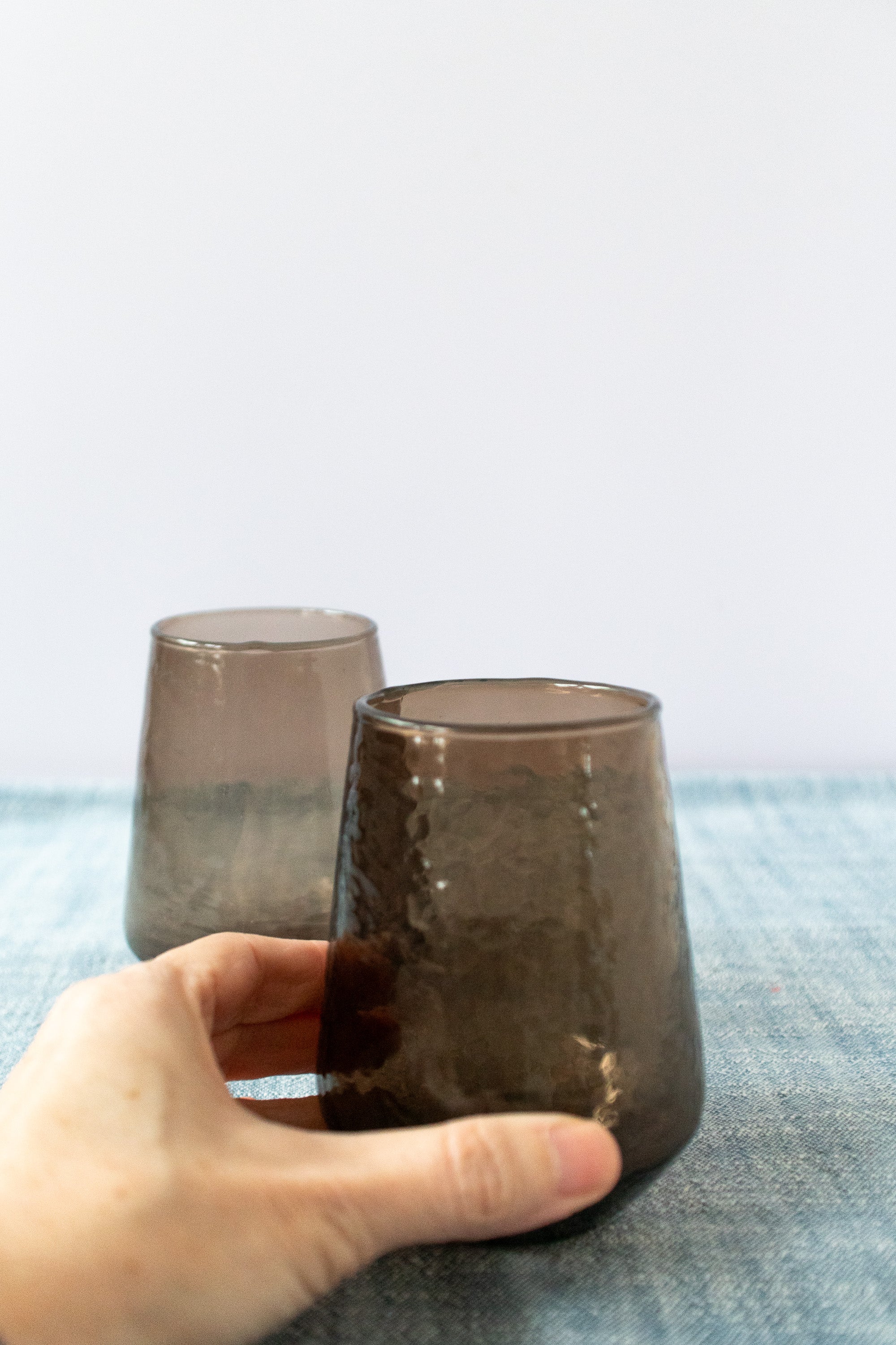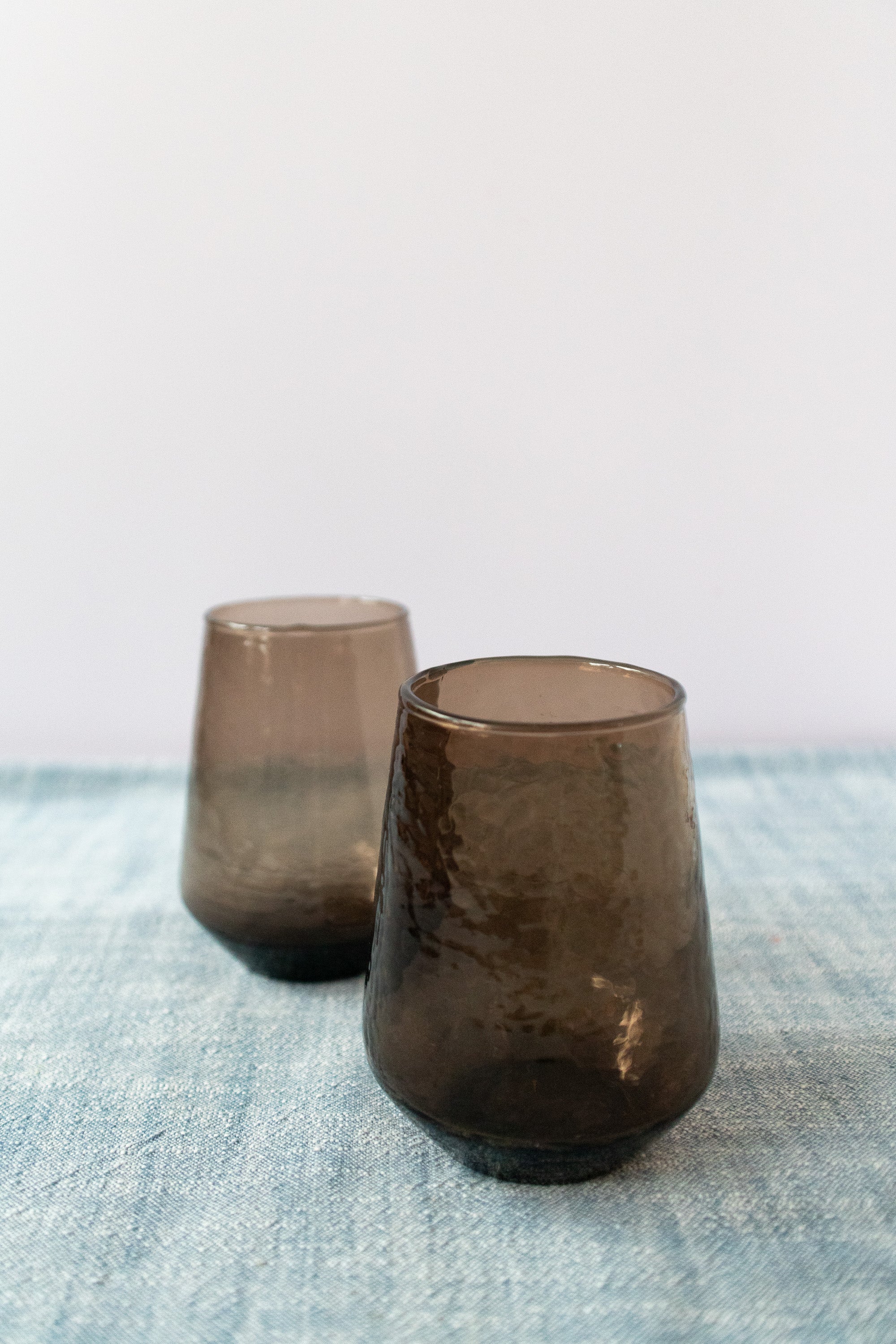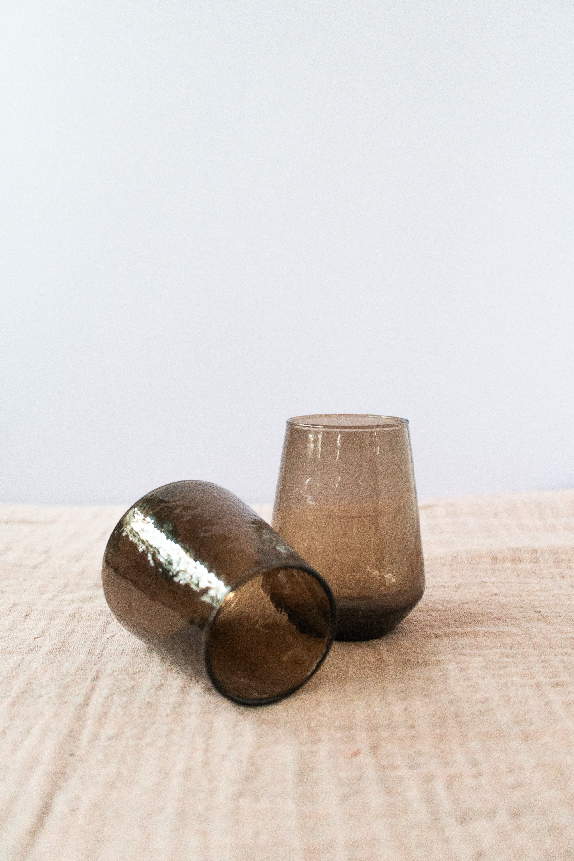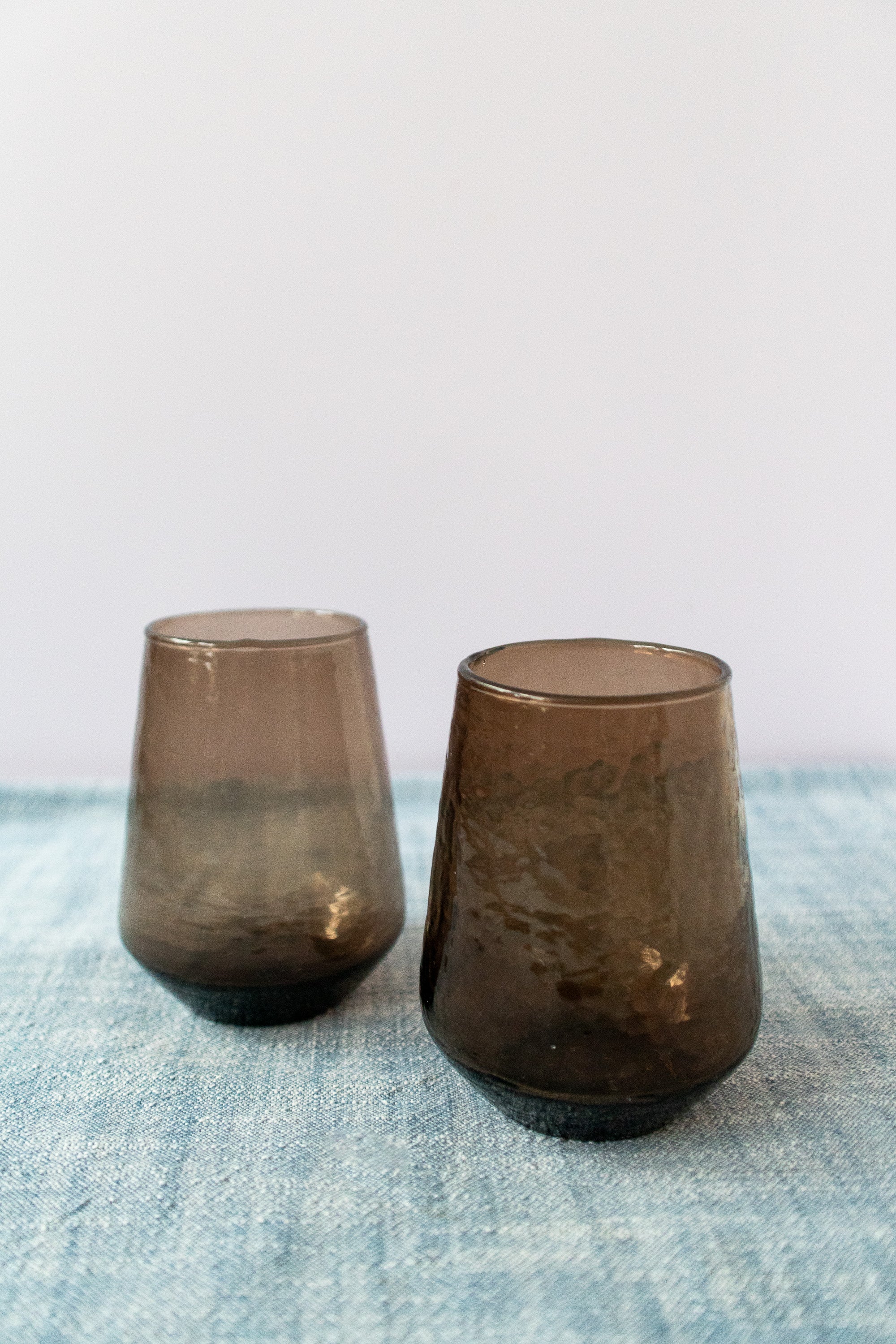 Handblown Hammered Glass Water Tumbler in Smokey Brown