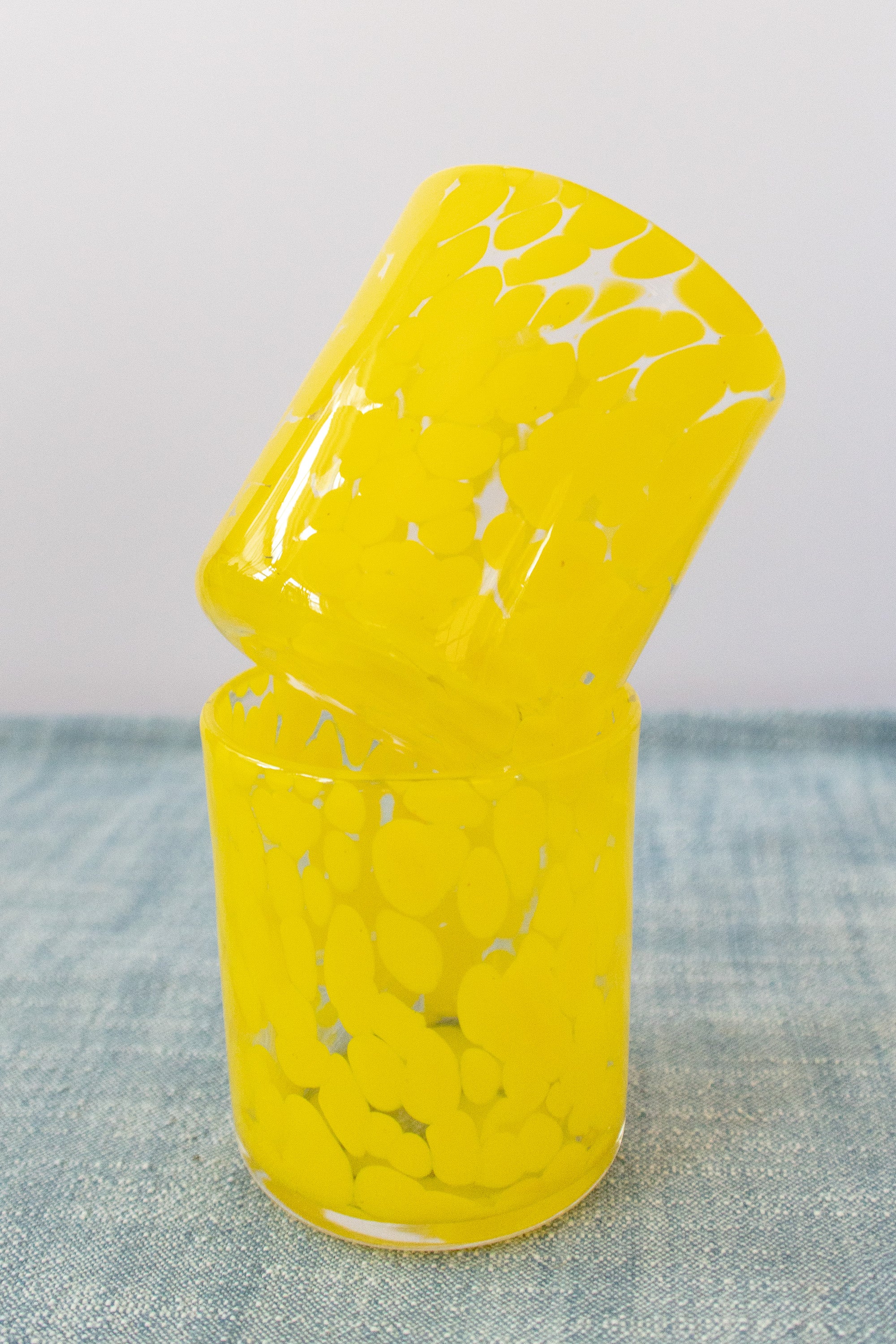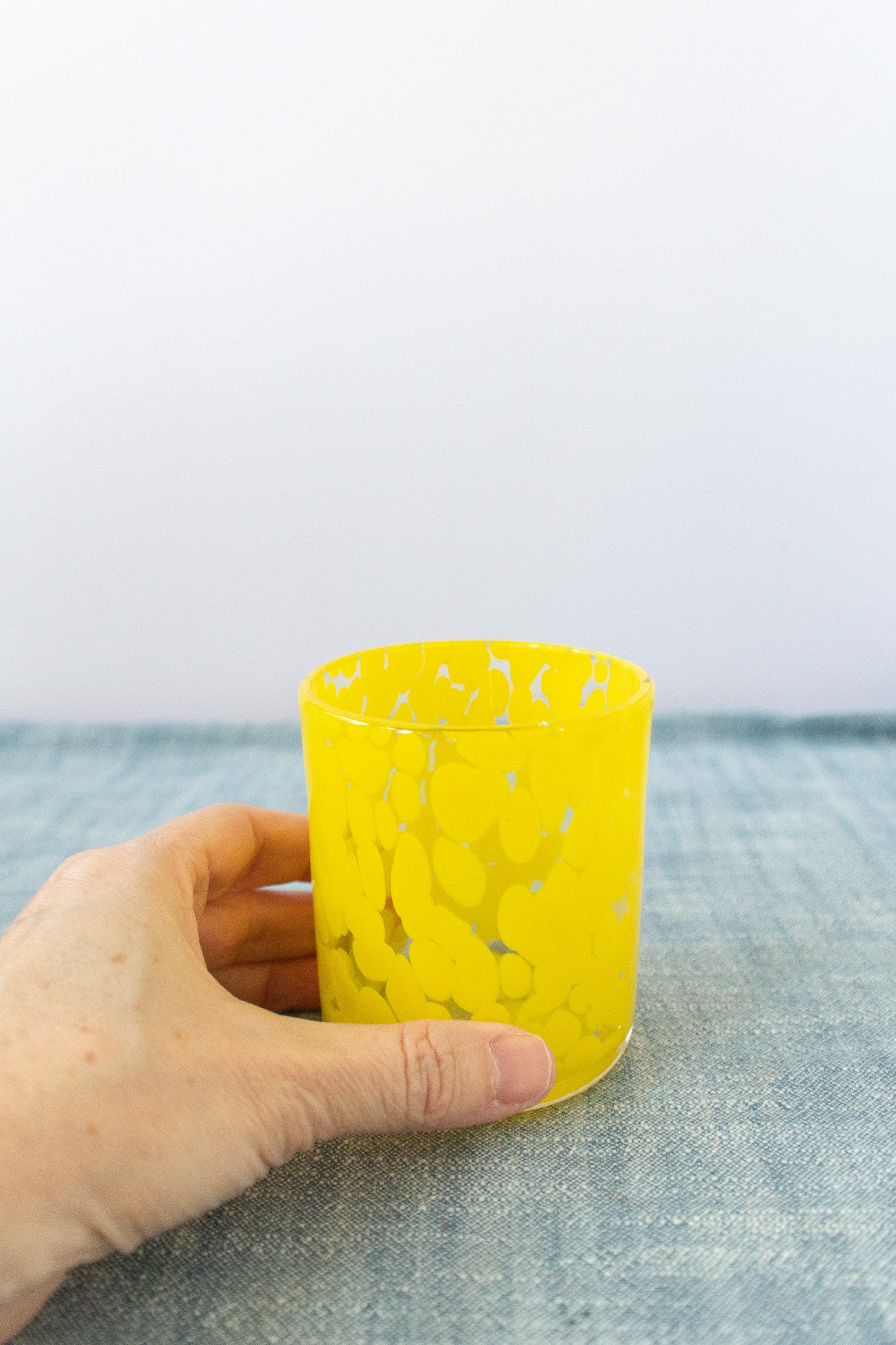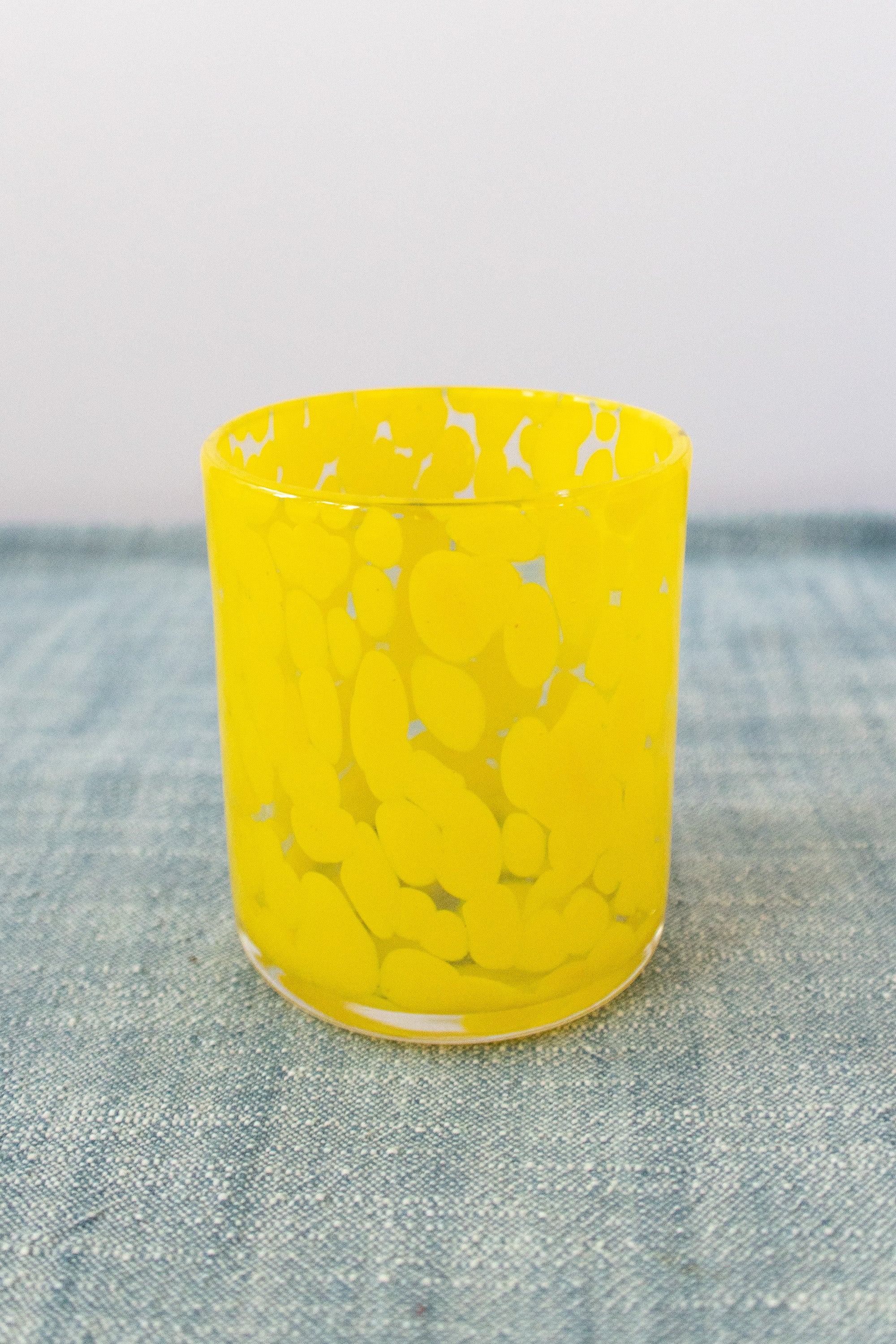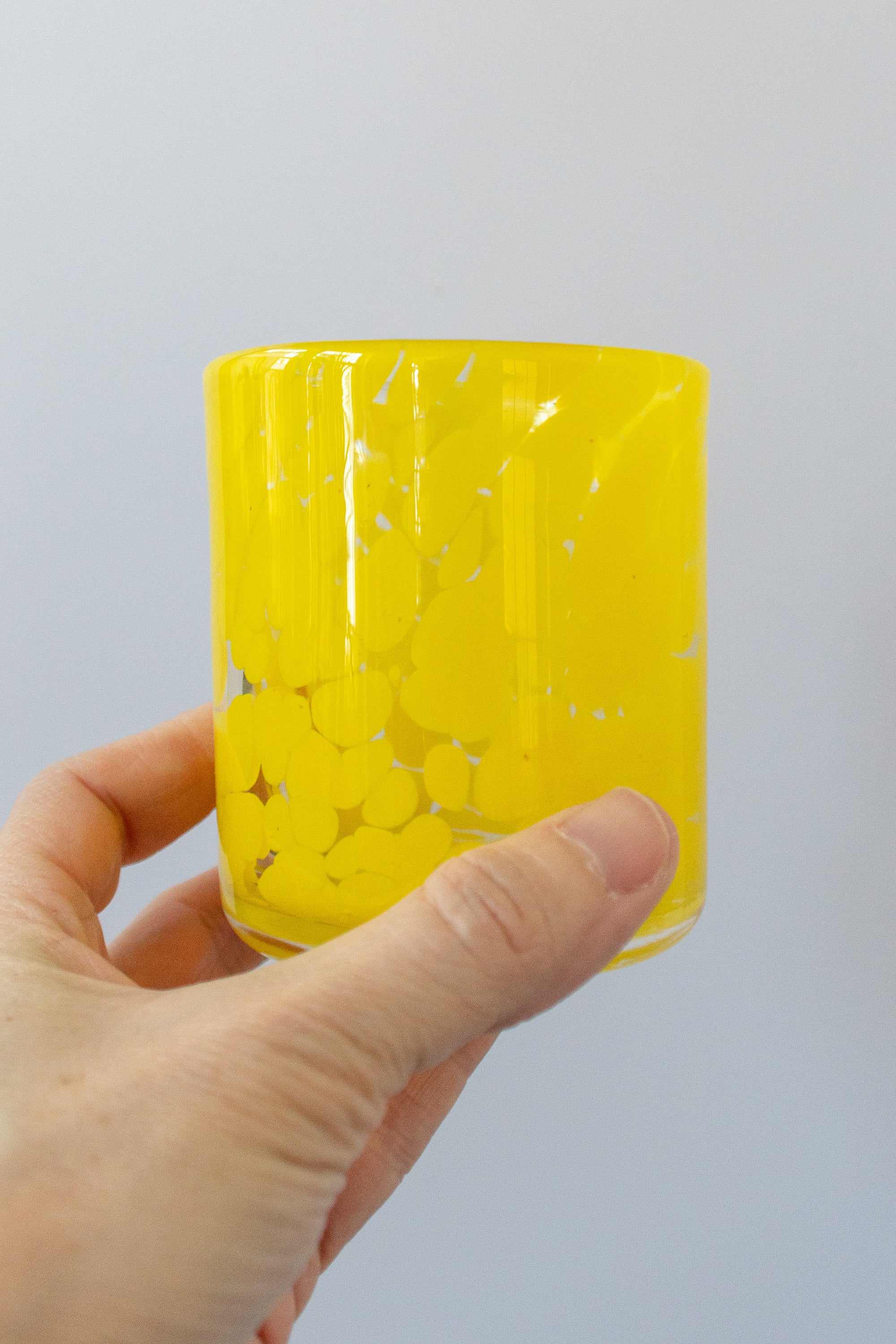 Yellow Spotted Hand-Blown Drinking Glass, Unique Beverage Tumbler