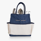 A place for everything and everything in its place - the large garden tote is a complete gardening set in a sturdy and durable polyester canvas bag with long carrying straps. The gardening tools - a digging trowel, a planting trowel, and a garden cultivator are all steel with wooden handles and tuck securely into an exterior pocket. Three exterior pockets for added storage, a stain resistant interior, and the lovely cape cod-inspired print are sure to make this your "forever" gardening kit!