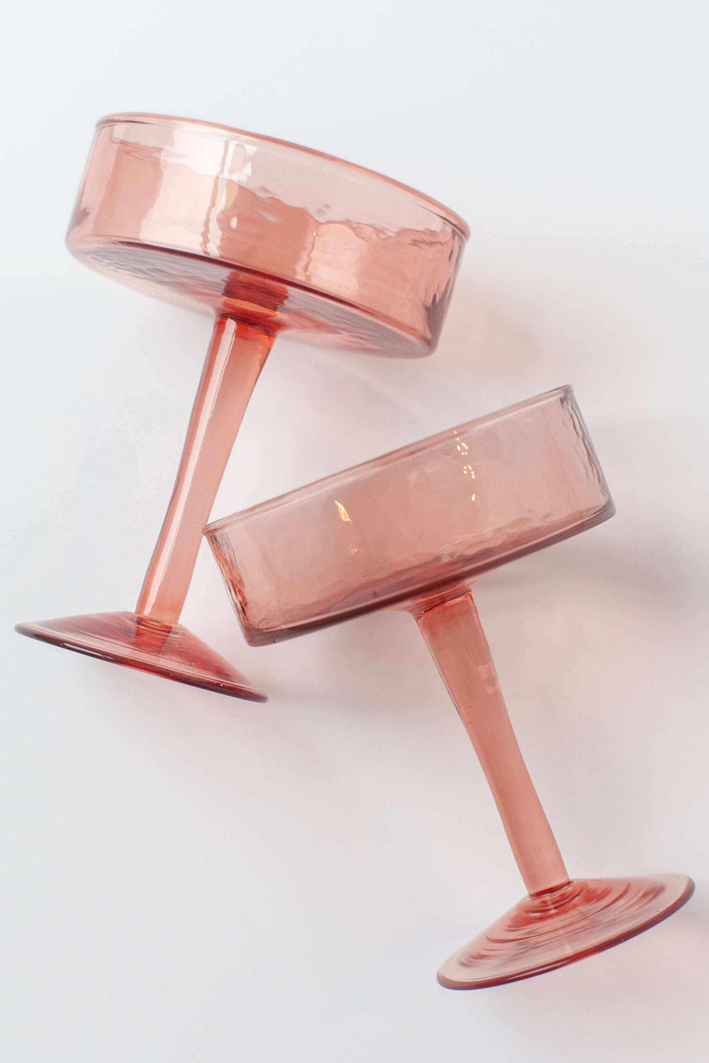 Coupe Cocktail Glass, Pink Coupe Glass Handblown & Hammered