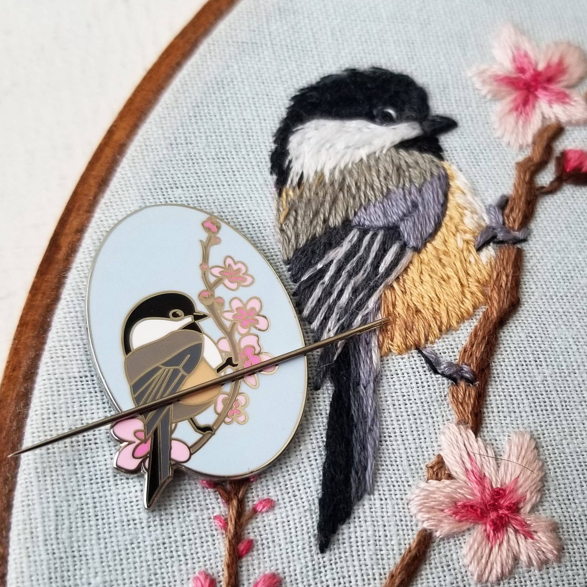 Magnetic Needle Minder for Embroidery with Chickadee Art