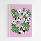 This is an 8 x 10 art print of beautiful leopard moths surrounded by flowers. It is an original illustration by independent female artist and business owner, Tara Reed, who hopes her art brings you a bit of joy.