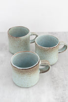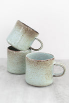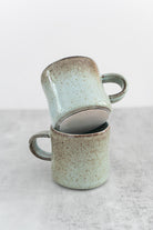 This slightly oversized chunky handmade pottery mug will make your morning coffee or tea a little more special. Featuring a speckled glaze over a mint green base, this mug features an easy to hold handle and an elevated diner aesthetic. This beautiful piece of stoneware pottery is food, microwave and dishwasher safe.