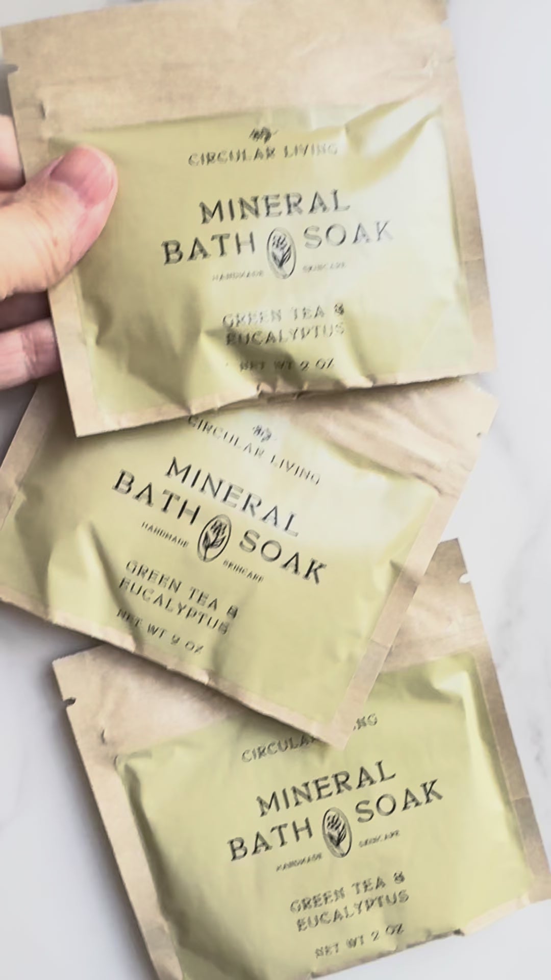 Ingredients: Magnesium sulfate ( epsom salt), sodium chloride (sea salt from the California coast), *camellia sinensis (matcha green tea), montmorillonite (green clay), *eucalyptus globulus (eucalutpus) oil, *citrus sinensis (sweet orange) oil, *lavandula angustifolia(lavender) oil